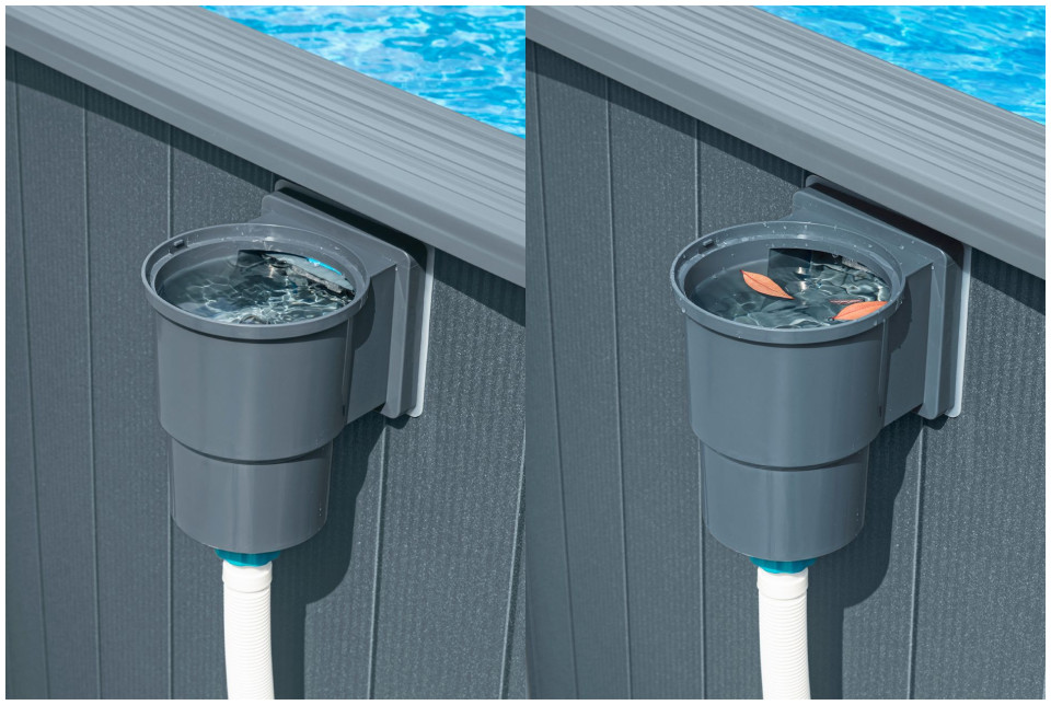 Το ενσωματωμένο επιφανειακό εξαφρηστήρι (''σουρωτήρι'') λειτουργεί με σύστημα φιλτραρίσματος για την απομάκρυνση των ανεπιθύμητων υπολειμμάτων και διατηρεί καθαρό το νερό.