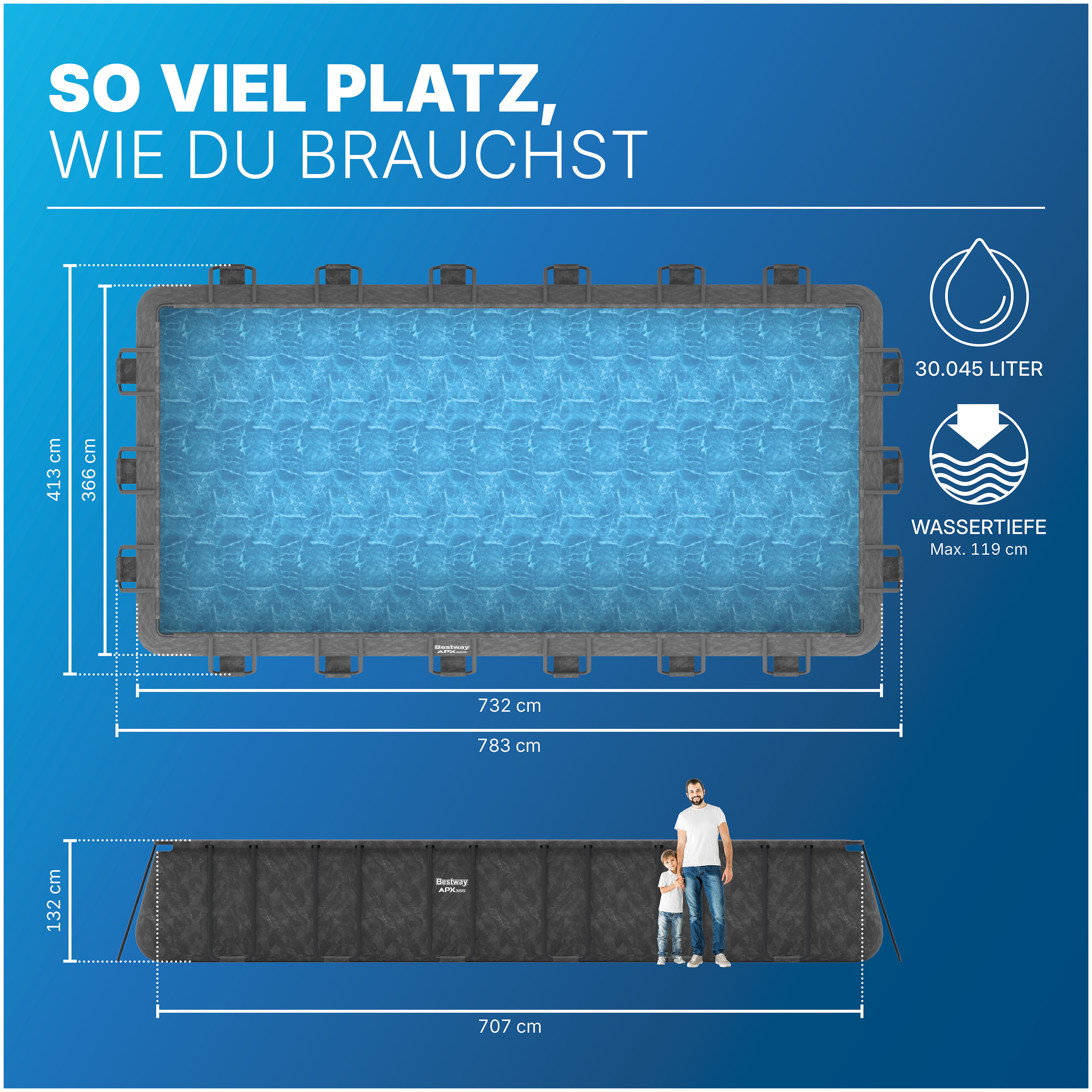 561KG APX 732 X 366 X 132 CM RECTANGULAR POOL SET