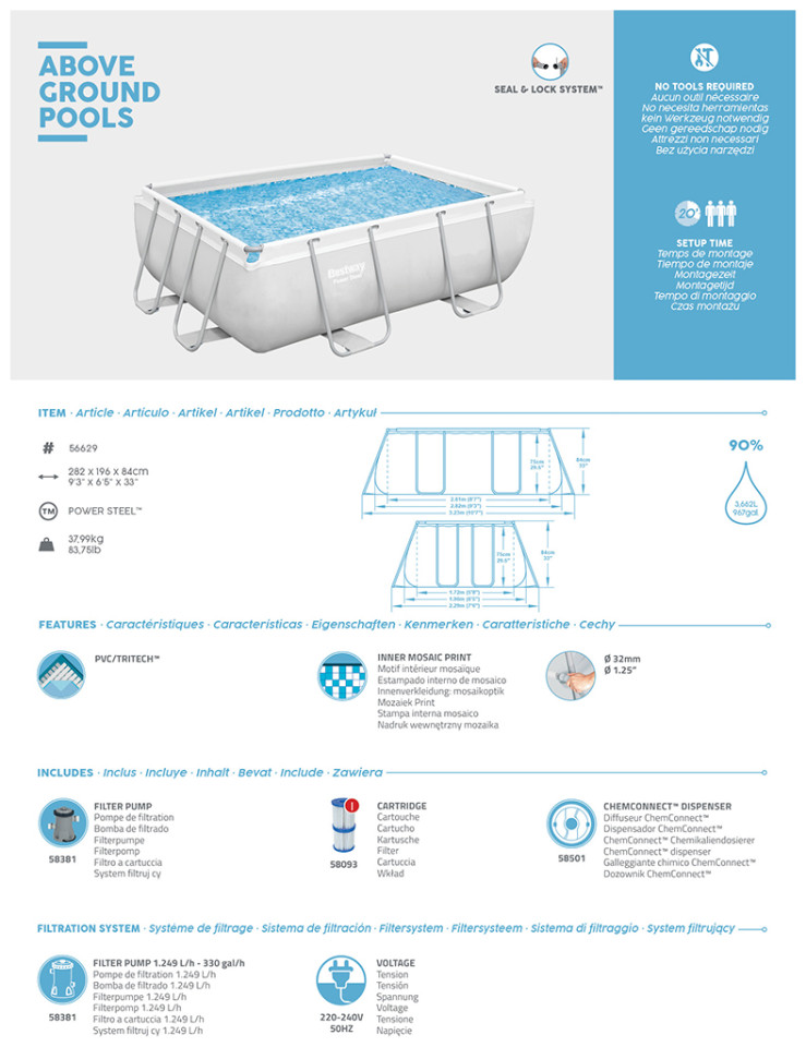 Πισίνα Παραλληλόγραμμη Power Steel Rect.Frame 282x196x84cm Κωδ. 15791