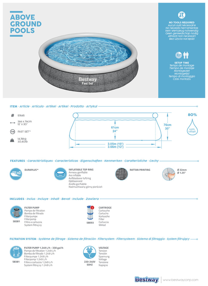 Πισίνα Στρογγυλή Fast Set Φ366X76 cm Κωδ. 15747