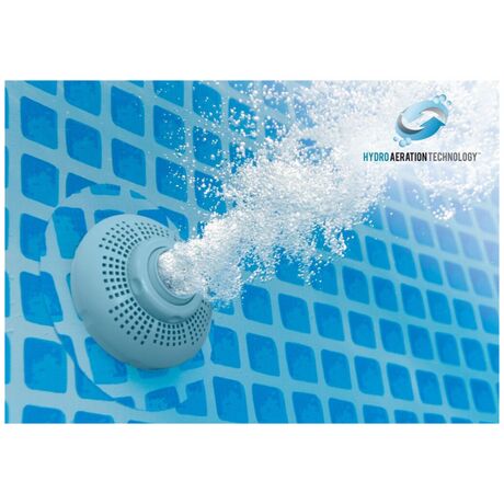 Η δεξαμενή συνοδεύεται από ειδική αντλία φιλτραρίσματος των υδάτων Intex Krystal Clear® με λειτουργία στα 7.950 Λίτρα/ Ώρα , η οποία λειτουργεί με την βοήθεια άμμου και ενσωματώνει τη νέα τεχνολογία Hydro Aeration Technology™ η οποία βελτιώνει την κυκλοφορία, το φιλτράρισμα και την ευκρίνεια του νερού, όπως επίσης αυξάνει τα αρνητικά ιόντα στην επιφάνειά του βελτιώνοντας τη φρεσκάδα του αέρα γύρω από την πισίνα. Η αντλία είναι το σπουδαιότερο κομμάτι της πισίνας, καθώς μέσω αυτής πραγματοποιείται ο καθημερινός καθαρισμός του νερού και απομακρύνονται κάθε ειδών ρύποι όπως άμμος και χώματα, έντομα, τρίχες, φύλλα και άλλα ενοχλητικά σκουπίδια. Η συντήρηση του νερού πραγματοποιείται μέσω της αντλίας, των χημικών και των βοηθητικών εργαλείων - αξεσουάρ, τα οποία σας διευκολύνουν με την διαδικασία.
