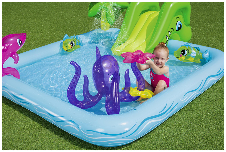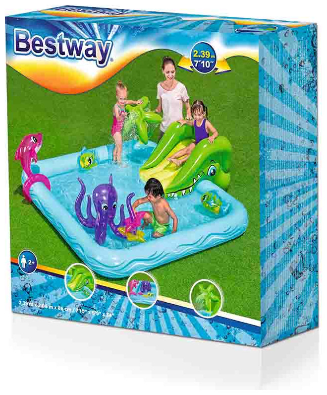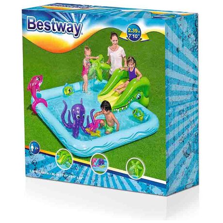 Πισίνα-Παιδότοπος Fantastic Aquarium Play Pool της Bestway με άνετες διαστάσεις 239x206x86cm και χωρητικότητα 308L ιδανική για να απολαμβάνουν τα παιδιά ξέγνοιαστα παιχνίδια στο νερό μαζί με την παρέα τους και να δροσίζονται από τον καλοκαιρινό καύσωνα. Με ενσωματωμένο εκτοξευτήρα σπρέι νερού που συνδέεται με λάστιχο για έξτρα διασκέδαση.