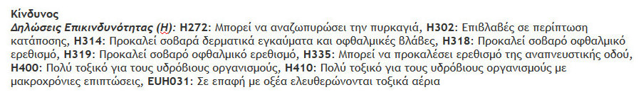 • επιβλαβές για το περιβάλλον και οξειδωτικό