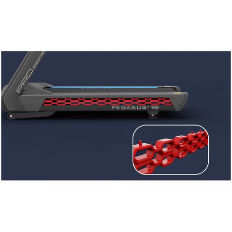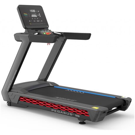 Διάδρομος Γυμναστικής Pegasus 3.5 hp ιδανικός για επαγγελματική χρήση αλλά ικανός για να ικανοποιήσει και τους πιο απαιτητικούς οικιακούς χρήστες. Με μοντέρνο σχεδιασμό και ιδανικές λεπτομέρειες για να κοσμεί κατάλληλα τον χώρο σας. Ο V8 διαθέτει μία εξαιρετικά στιβαρή κατασκευή που υποστηρίζεται από έναν κινητήρα 3.5HP AC με inverter και εγγυάται μέγιστο βάρος χρήστη 160 kg, κάτι που σημαίνει ότι ίσως είναι ο τελευταίος διάδρομος που θα χρειαστείτε ποτέ. Η κονσόλα του V8 είναι εξοπλισμένη με 5 πεδία LCD για πλήρη ενημέρωση κατά τη διάρκεια της προπόνησής σας και εύκολη πρόσβαση σε απαιτητικά προγράμματα άσκηση. Ενσωματωμένα επιπλέον θα βρείτε ανεμιστήρα, θύρες USB και mp3, καθώς και βάση τοποθέτησης για το tablet σας. Εκτός από τους αισθητήρες αφής, ο V8 σας παρέχει και ζώνη στήθους για πιο ακριβή μέτρηση των καρδιακών παλμών σας. Αφού κατεβάσετε τη δωρεάν εφαρμογή Fitshow και ενεργοποιήσετε το Bluetooth στο κινητό ή το tablet σας, ανοίξτε την εφαρμογή, δημιουργήστε ένα λογαριασμό και απλά αναζητήστε το διάδρομό σας. Μέσω του Fitshow μπορείτε να κρατάτε αρχείο των προπονήσεών σας, να ακολουθείτε πραγματικές διαδρομές σε χάρτες, ακόμη και να ασκηθείτε έξω από το σπίτι χάρη στο ενσωματωμένο GPS! Η εφαρμογή Kinomap κάνει την προπόνηση στο διάδρομο, στο ποδήλατο, στο ελλειπτικό ή στην κωπηλασία σας, πιο διασκεδαστική από ποτέ. Επιλέξτε ένα βίντεο και παρακολουθήστε την κίνησή σας μέσα στο χάρτη επιλεγμένων διαδρομών και των σχετικών βίντεο που τις συνοδεύουν. Η εφαρμογή θα αλλάζει αυτόματα την κλίση ή την αντίσταση του εξοπλισμού σας, ώστε να ταιριάζει με τη διαδρομή που επιλέξατε! Ο V8 διαθέτει τάπητα διπλής επίστρωσης, γεγονός που συνεισφέρει στην απορρόφηση των κραδασμών για μικρότερη επιβάρυνση των αρθρώσεων. Οι εντυπωσιακές διαστάσεις των 58x156 cm εγγυώνται εξαιρετική άνεση κατά το τρέξιμο, ενώ η επιφάνειά του είναι σχεδιασμένη με μορφή αυλακώσεων εξασφαλίζοντας ιδανική πρόσφυση, υποστήριξη και ασφάλεια. Για να αποφύγετε την περιττή καταπόνηση στους συνδέσμους σας, ο V8 είναι εξοπλισμένος με το σύστημα απορρόφησης κραδασμών Cellular Cushion System, με σχεδιασμό πολλαπλών κυψελών, που εξασφαλίζει μία ομαλή διαδρομή με την μεγαλύτερη δυνατή απορρόφηση των κραδασμών κατά την διάρκεια της άσκησης. Η ανθεκτικότητα του διαδρόμου οφείλεται εν πολλοίς στο 25mm δάπεδο του διαδρόμου και στο επαγγελματικό πάχος 2.5mm του τάπητα. Ο κομψός σχεδιασμός του V8 δε σταματά μόνο στο πλαίσιο, αλλά δίνει προσοχή στη λεπτομέρεια. Κατά μήκος της κάθε πλευράς του δαπέδου, θα βρείτε απαλό φωτισμό Led, ο οποίος οριοθετεί την κίνηση του χρήστη για βέλτιστη ασφάλεια.