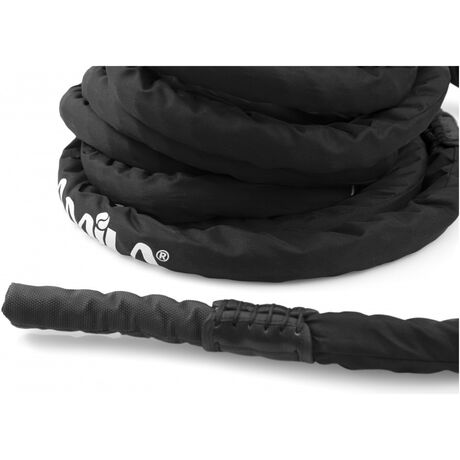 Οι ασκήσεις με ένα σχοινί Battle Rope μπορούν να συνδυάσουν αερόβια και δυναμική προπόνηση. Το σχοινί προπόνησης crossfit της Amila των 9 m eίναι ένα εξαιρετικό αξεσουάρ για όσους ασχολούνται με το άθλημα αυτό καθώς προσφέρει πλήρη ενεργοποίηση ολόκληρου του σώματος και όλων των μυϊκών ομάδων. Γυμνάστε προσαγωγούς, γλουτούς και γοφούς, ενισχύστε τους μυς των ποδιών για ακόμη ψηλότερα άλματα, δουλέψτε με τους ώμους και τα χέρια σας και πετύχετε τη μέγιστη ενεργοποίηση του κορμού σας με κάθε σας κίνηση. Κατασκευασμένο από Juta, ένα φυσικό υλικό, και εξοπλισμένο με μανίκι από ανθεκτικό νάιλον Cordura 600D και λαβή 38 cm με αντιολισθητική επικάλυψη από Kevlar για σταθερό και άνετο πιάσιμο ενώ έχει ιδιαίτερα υψηλή αντοχή. Όσο μεγαλύτερο είναι το μήκος του σχοινιού τόσο μεγαλύτερο το βάρος του και όσο μεγαλύτερο το βάρος τόσο αυξάνεται η δυσκολία της εκτελούμενης άσκησης. Με το σχοινί αυτό ένας αρχάριος θα εξοικειωθεί ευκολότερα με τις ασκήσεις crossfit και την χρήση του.
