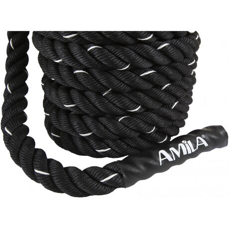 Οι ασκήσεις με ένα σχοινί Battle Rope μπορούν να συνδυάσουν αερόβια και δυναμική προπόνηση. Το σχοινί προπόνησης crossfit της Amila των 15 m eίναι ένα εξαιρετικό αξεσουάρ για όσους ασχολούνται με το άθλημα αυτό καθώς προσφέρει πλήρη ενεργοποίηση ολόκληρου του σώματος και όλων των μυϊκών ομάδων. Γυμνάστε προσαγωγούς, γλουτούς και γοφούς, ενισχύστε τους μυς των ποδιών για ακόμη ψηλότερα άλματα, δουλέψτε με τους ώμους και τα χέρια σας και πετύχετε τη μέγιστη ενεργοποίηση του κορμού σας με κάθε σας κίνηση. Κατασκευασμένο από πολυεστέρα με πάχος ίνας 2mm και εξοπλισμένο με λαβή 38 cm με αντιολισθητική επικάλυψη για σταθερό και άνετο πιάσιμο ενώ έχει ιδιαίτερα υψηλή αντοχή. Όσο μεγαλύτερο είναι το μήκος του σχοινιού τόσο μεγαλύτερο το βάρος του και όσο μεγαλύτερο το βάρος τόσο αυξάνεται η δυσκολία της εκτελούμενης άσκησης. Με το σχοινί αυτό ένας έμπειρος βρει μεγαλύτερη πρόκληση κατά την χρήση του.