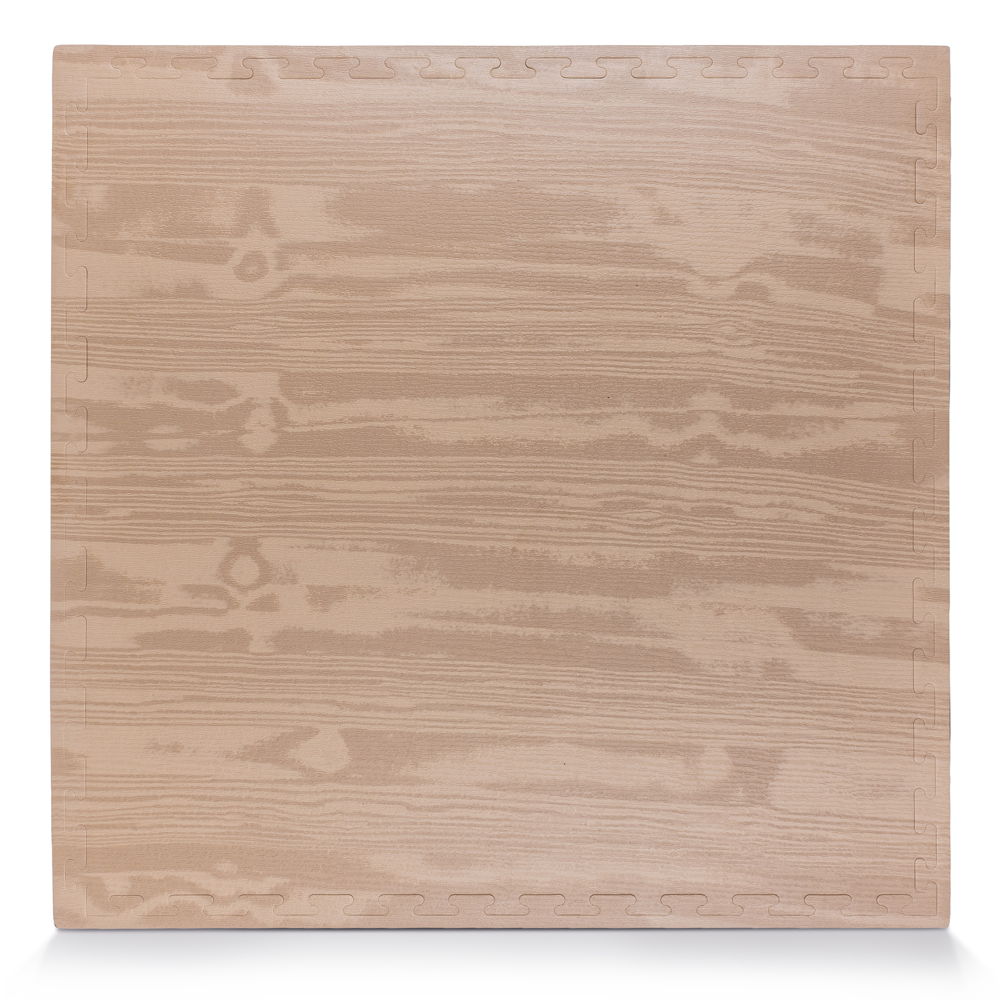 Η επιφάνεια σε καφέ χρώμα όψης ξύλου προσφέρει ζεστή και κομψή εμφάνιση, ενώ το πάχος των 2,5 cm διασφαλίζει άνεση και απορρόφηση κραδασμών κατά τις πτώσεις και όλες τις ασκήσεις.