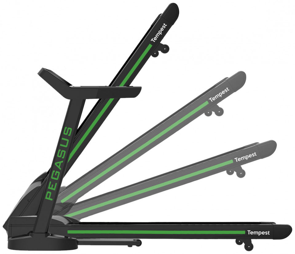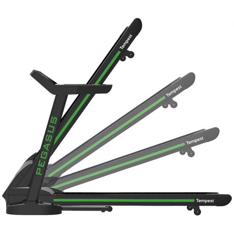 Κατάλληλος για οικιακά γυμναστήρια ο ισχυρός διάδρομος γυμναστικής Tempest της Pegasus αποτελεί ένα βαριάς χρήσης όργανο καθώς είναι εξοπλισμένος με ένα μοτέρ 3.2Hp το οποίο σας δίνει την δυνατότητα να αναπτύξετε ταχύτητα εως και 20 Km/h! Ένας πραγματικά ισχυρός κινητήρας, αθόρυβος, με διπλό αντικραδασμικό σύστημα που διαθέτει με ελαστομερή στοιχεία μαζί με ελατήρια, η ενισχυμένη και μεγάλη επιφάνεια βάδισης 51x151cm σας προσφέρουν μια ομαλή και σταθερή κίνηση ακόμη και στις υψηλότερες ταχύτητες! Η άσκηση σε έναν ηλεκτρικό διάδρομο γυμναστικής σας παρέχει πολλά καρδιοαναπνευστικά οφέλη. Μπορείτε να ρυθμίσετε την κλίση ηλεκτρονικά σε 18 επίπεδα για ακόμη πιο έντονη άσκηση και καλύτερα αποτελέσματα καθώς όταν τρέχετε ή περπατάτε σε ανηφόρα καταβάλετε μεγαλύτερη προσπάθεια με αποτέλεσμα τη βελτίωση της αντοχής, της γράμμωσης και της εμφάνισης των μηρών και των γλουτών! Η μεγάλου μεγέθους κονσόλα του με ένα εντυπωσιακό σχεδιασμό σας προσφέρει τον απόλυτο έλεγχο στο πρόγραμμα εκγύμνασης που θέλετε να ακολουθήσετε και στις παραμέτρους που θέλετε να ρυθμίσετε είτε επιλέγοντας ένα από τα 24 προεγκατεστημένα προγράμματα είτε διαμορφώνοντας το ιδανικό πρόγραμμα για εσάς ενώ έχετε την δυνατότητα να αποθηκεύσετε μέχρι 3 προγράμματα χρήστη. Επίσης παρακολουθείτε ανα πάσα στιγμή τα δεδομένα της άσκησής σας και τις απαραίτητες μετρήσεις όπως την ταχύτητα που αναπτύσσετε, το χρόνο που προπονήστε, την απόσταση που διανύσατε και τις θερμίδες που καταναλώσατε. Μέσω σύνδεσης bluetooth με την έξυπνη συσκευή σας ή το tablet σας μπορείτε να συνδεθείτε με τις εφαρμογές iFitshow, Zwift και Kinomap. Κάντε την προπόνησή σας ακόμη πιο διασκεδαστική, μοιραστείτε τα δεδομένα της άσκησής σας με τους φίλους σας και ακολουθείστε διαδρομές σε virtual χώρο. Η μέτρηση των καρδιακών παλμών γίνεται εύκολα και σε πραγματικό χρόνο μέσω των ειδικών αισθητήρων στις χειρολαβές ενώ μπορείτε να συνδέσετε προαιρετικά μια ειδική ζώνη στήθους (δεν περιλαμβάνεται) με τον ενσωματωμένο ασύρματο δέκτη καρδιακών παλμών. Ο διάδρομος αυτός έχει την δυνατότητα αναδίπλωσης ώστε να μετακινείτε και να αποθηκεύεται εύκολα καταλαμβάνοντας ελάχιστο χώρο, το σύστημα αναδίπλωσης Easy Lift System σας επιτρέπει να κάνετε την διαδικασία ακόμη και με ένα χέρι με την βοήθεια ενός υδραυλικού αμορτισέρ. Στην κονσόλα επίσης διαθέτει θύρα φόρτισης usb ώστε να φορτίζετε τις συσκευές σας μέσω του διαδρόμου και να τις έχετε συνεχώς δίπλα σας. Ένας πραγματικά καταπληκτικός διάδρομος για οικιακή χρήση!