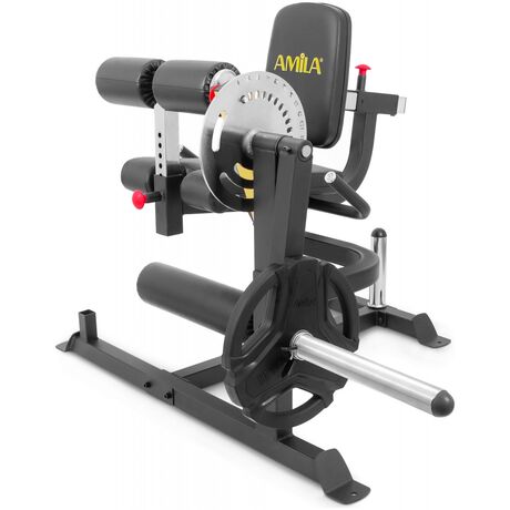 Μηχάνημα Εκτάσεων Ποδιών της Amila ιδανικό για να ικανοποιήσει και τους πιο απαιτητικούς οικιακούς χρήστες αλλά και για χρήση σε μικρά στούντιο και χώρους Personal Training. Το μηχάνημα AMILA AX1030 διαθέτει εύκολα ρυθμιζόμενα υπερμεγέθη μαξιλάρια τόσο όσον αφορά το ύψος των μαξιλαριών των γονάτων, όσο και της κλίσης των μαξιλαριών εκτάσεων. Για το λόγο αυτό το μηχάνημα είναι κατάλληλο για ένα ευρύ φάσμα ασκούμενων. Δυνατότητα φόρτωσης έως και 200 κιλά με δίσκους Φ28 ή Φ50mm. Το μηχάνημα εκτάσεων ποδιών είναι κατασκευασμένο από σίδερο πάχους 2 χιλιοστών προσφέροντας μια ιδιαίτερα υψηλή αντοχή. Τα μαξιλάρια πάχους 6 εκατοστών προσφέρουν άνεση και ασφάλεια, ενώ οι χειρολαβές με μαλακή επένδυση βοηθούν στο grip και τη συγκέντρωση στην ορθή εκτέλεση της άσκησης.