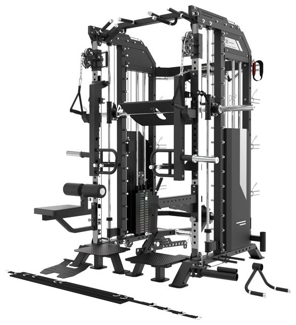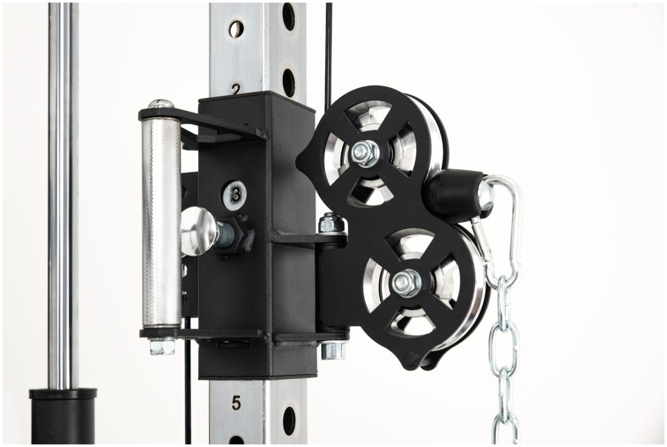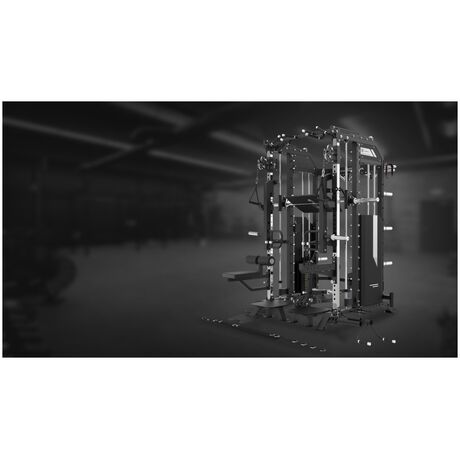 Ο Πολυμηχανισμός Power Station PS-7 της VIKING είναι ο ιδανικός επαγγελματικός σταθμός δύναμης που συνδυάζει αντοχή και λειτουργικότητα. Με συμπαγείς διαστάσεις, προσφέρει πληθώρα ασκήσεων με ελεύθερα ή ενσωματωμένα κιλά, ιδανικό για κάθε γυμναστήριο. Η στιβαρή κατασκευή του εξασφαλίζει άριστη ροή στις τροχαλίες και στο Smith, επιτρέποντας την εκτέλεση ασκήσεων με μεγάλη ακρίβεια. Διαθέτει μεγάλο φόρτο ενσωματωμένων κιλών (180 kg) και αντοχή φορτίου σε Rack, Μονόζυγο και Δίζυγο. Το PS-7 περιλαμβάνει Smith machine με αθόρυβη λειτουργία και γραμμικά ρουλεμάν, Functional Crossover με ρυθμιζόμενες τροχαλίες, Power Rack με μετακινούμενα στηρίγματα και σταθμό μονόζυγου. Επιπλέον, διαθέτει δίζυγο, τροχαλία χαμηλής κωπηλατικής, Landmine και Hip Thrust bench. Με τα πρόσθετα αξεσουάρ, όπως ίσια και στραβή μπάρα, δέστρα αστραγάλου και σκοινί τρικέφαλων, το PS-7 καλύπτει όλες τις ανάγκες προπόνησης.