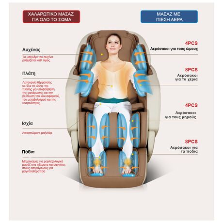 Η Πολυθρόνα Μασάζ A-192 προσφέρει ένα βαθύ – ανακουφιστικό μασάζ για τα χέρια, χρησιμοποιώντας αερόσακους διαβαθμισμένης ισχύος, τοποθετημένους σε διαφορετικά σημεία ώστε να κάνουν την είσοδο των χεριών στις υποδοχές ευκολότερη και το μασάζ αποτελεσματικότερο. Επιλέξτε την ιδανική θέση για εσάς, καθώς η A-192 προσφέρει πολλαπλές ηλεκτρικές ρυθμίσεις της θέσης της πλάτης και των ποδιών ώστε να βρούμε την καλύτερη θέση για να απολαύσουμε το μοναδικό μασάζ που προσφέρει. Υπάρχει η δυνατότητα να έρθει και σε πλήρη οριζόντια θέση σαν κρεβάτι. Με την φυσική και άνετη θέση μασάζ επιτυγχάνεται χαλάρωση, ανακούφιση από την κόπωση της ημέρας και βελτιστοποίηση των αποτελεσμάτων της μάλαξης. Με τη νέα – καινοτόμο λειτουργία φωνητικού ελέγχου επιτρέπει πλέον την απερίσπαστη συγκέντρωση στην εμπειρία του μασάζ χωρίς να ψάχνουμε το κοντρόλ!