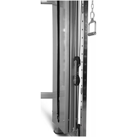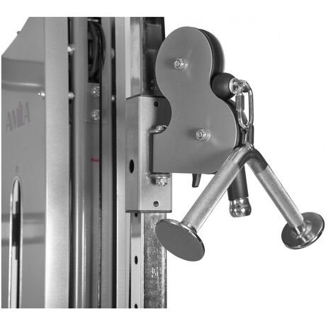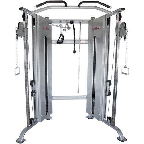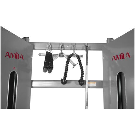 Η διπλή τροχαλία από την AMILA, η FT3100 ανήκει στην κατηγορία των οικιακών - ημιεπαγγελματικών μηχανημάτων. Είναι η ιδανική επιλογή για σπίτι ή ξενοδοχείο και μικρά studio καθώς συνδυάζει άριστα την ποιότητα με την τιμή. Τα κιλά που διαθέτει είναι ιδανικά για προπόνηση ακόμα και προχωρημένων χρηστών. Διαθέτει πολλά αξεσουάρ για εναλλαγή ασκήσεων στην προπόνηση. Η διπλή τροχαλία FT3100, είναι αρκετά στιβαρή καθώς διαθέτει σιδερένιους σωλήνες διαστάσεων 40x80 χιλιοστών, και πάχους 2 χιλιοστών. Οι οδηγοί βαρών είναι από σίδερο, χρωμιωμένοι για αντοχή και ωραία κίνηση. Το συνολικό βάρος του μηχανήματος (χωρίς τα βάρη) αγγίζει τα 134 κιλά. Μαζί έρχονται και τα καλύμματα βαρών τα οποία δεν δίνουν ελεύθερη πρόσβαση προς τις πλάκες βαρών προστατεύοντας σας από τυχών ατύχημα. Μαζί με την διπλή τροχαλία περιλαμβάνονται μεταλλικές πλάκες βαρών συνολικούς βάρους 100 κιλών (50x2). Τα 50 κιλά στην κάθε πλευρά είναι αρκετά ακόμα και για χρήστες που κάνουν αρκετό καιρό γυμναστική. Τα συρματόσχοινα είναι αεροπορικού τύπου ιδιαίτερα υψηλής αντοχής 2000lbs (900 κιλών). Ο επιλογέας βάρους είναι φτιαγμένος έτσι για να ασφαλίζει με σιγουριά και σταθερότητα στην θέση που επιλέγετε. Απλά τραβήξτε τον μοχλό και μεταφέρετε την τροχαλία με την λαβή, η οποία έχει επένδυση λαστίχου. Η αρίθμηση των θέσεων επάνω στην ράγα κύλισης είναι χαραγμένη, για ομορφιά και αντοχή στο χρόνο. Η τροχαλίας έχουν πολύ μεγάλο εύρος γωνίας κίνησης, για να μπορείτε να αυξήσετε το ασκησιολόγιο σας γυμνάζοντας ακόμα περισσότερους μυς. Η τροχαλία FT3100 έρχεται με πολύ πλούσια ποικιλία σε αξεσουάρ λαβών καθώς περιλαμβάνει: Μακριά/Κοντή μπάρα, Σχοινί τρικεφάλων, Λαβή τρικεφάλων τύπου V, 2 Ζευγάρια χειρολαβών, 3 αλυσίδες.