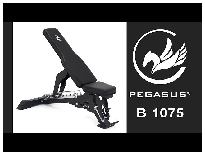 O Πάγκος Pegasus® B1075 διαθέτει μια ιδιαίτερα στιβαρή κατασκευή αντοχής. Η πλάτη ρυθμίζεται σε 9 διαφορετικές γωνίες, σε επίπεδη και επικλινή θέση, ενώ το κάθισμα ρυθμίζεται σε 3 θέσεις, ώστε να εκτελείτε εύκολα όλες τις αγαπημένες σας ασκήσεις με αλτήρες και μπάρα. Τα επαγγελματικού επιπέδου και υψηλής πυκνότητας αφρώδη μαξιλάρια σε συνδυασμό με την ανθεκτική στην υγρασία ταπετσαρία βινυλίου, προσφέρουν μία αίσθηση επαγγελματικού εξοπλισμού στο χώρο σας. Διαθέτει αντιολισθητικά επιθέματα ποδιών που προστατεύουν το δάπεδο και ρόδες με κυλινδρικά ρουλεμάν για ευκολότερη μεταφορά. Η περιστρεφόμενη δομή ελαχιστοποιεί τον χώρο μεταξύ των μαξιλαριών, που έχουν δερματίνη πάχους 6 cm, μαλακή και άνετη. Ο πάγκος pegasuς είναι κατάλληλος για ξενοδοχεία,studio αλλά και τον οικιακό σας εξοπλισμό.