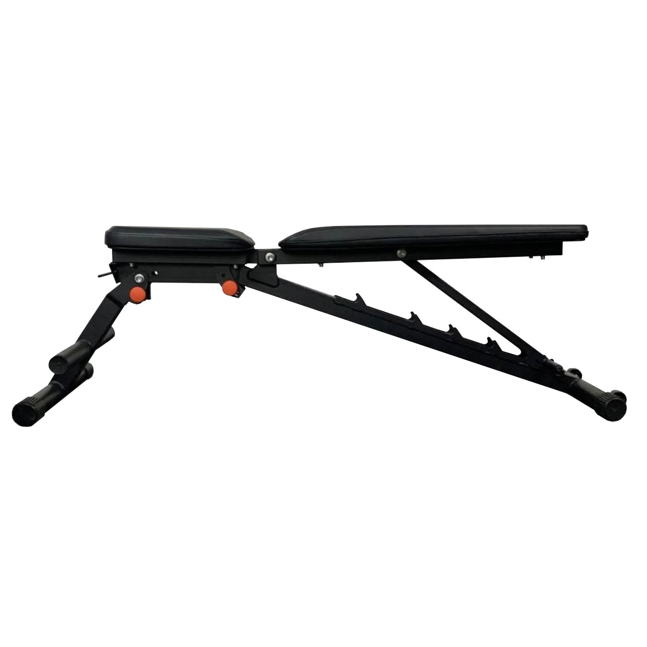 Ο πτυσσόμενος πάγκος βαρών προσφέρει γωνία εκπαίδευσης 90°. Με τα ακριβή περιγράμματα των μαξιλαριών, ακολουθεί το "νόμο" της εργονομίας. Τα μαξιλάρια έχουν επίσης διάμετρο 6 cm. Τα κινούμενα μέρη είναι πολύπλοκα και εξαιρετικά σταθερά.