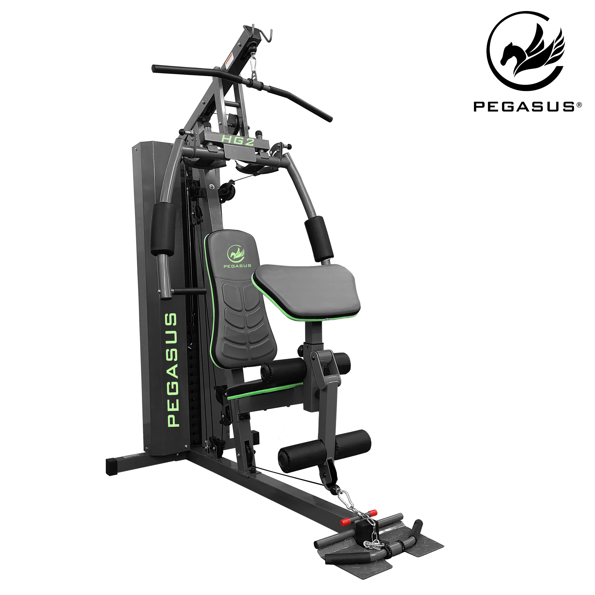 Το Pegasus® HG2 συνδυάζει πολλά βασικά κομμάτια εξοπλισμού δύναμης σε ένα μηχάνημα. Η στιβαρή κατασκευή του πλαισίου επιτρέπει τη λειτουργία του από χρήστες έως 150kg.