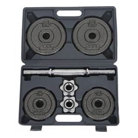 Σετ αλτήρων 10 κιλά της LiveUp ιδανικό για μια ολοκληρωμένη εκγύμναση με βάρη. Ένας αποτελεσματικός τρόπος για αν μειώσετε το λίπος, να αυξήσετε τη μυϊκή σας μάζα και να κάψετε θερμίδες. Προσθέστε μερικές ασκήσεις με αλτήρες στο πρόγραμμα σας για να τονώσετε και να δυναμώσετε τον κορμό και τα χέρια σας. Στην συσκευασία περιλαμβάνονται ένας αλτήρας 36cm και διάμετρο 26mm καθώς και δίσκοι 2x1.25kg και 2x2.5kg δίνοντας σας την δυνατότητα να ρυθμίσετε εσείς το βάρος στους αλτήρες και τις ασκήσεις που επιθυμείτε να εκτελέσετε. Βολική Συσκευασία(Βαλίτσα) για να αποθηκεύετε με άνεση και ασφάλεια τα βάρη και τον αλτήρα, εξοικονομώντας έτσι χώρο και προστατεύοντας τα προϊόντα από πιθανές φθορές.