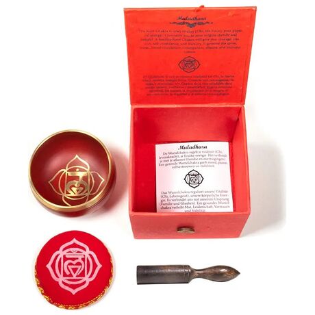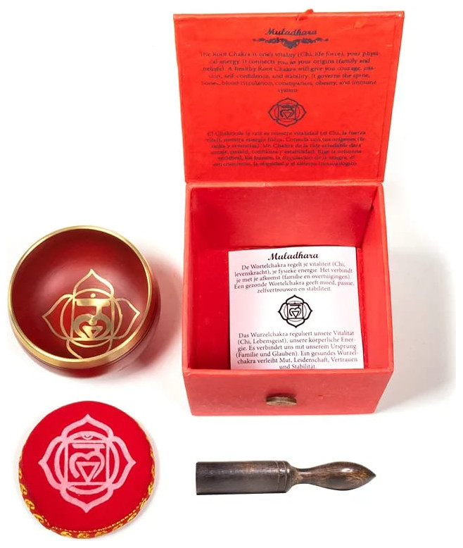 Ανακαλύψτε την ηρεμία και την ισορροπία με το Σετ Δώρου Μπολ Διαλογισμού Singing Bowl Muladhara Root Chakra 8cm. Αυτό το μοναδικό μπολ διαλογισμού, γνωστό και ως ηχογαβάθα, διαθέτει όμορφη χαραγμένη διακόσμηση που αντιπροσωπεύει το Root Chakra. Το σετ έρχεται σε μια εντυπωσιακή συσκευασία δώρου από χαρτί lokta σε κόκκινο χρώμα, που περιλαμβάνει πληροφορίες για το Muladhara Τσάκρα σε έξι γλώσσες: Αγγλικά, Ολλανδικά, Γερμανικά, Ιταλικά, Γαλλικά και Ισπανικά. Μαζί με το μπολ, θα βρείτε ένα ξύλινο ραβδί και ένα μαξιλάρι στήριξης, ιδανικά για την καλύτερη εμπειρία διαλογισμού. Κατασκευασμένο από ένα μείγμα ορείχαλκου, μπρούτζου και σιδήρου, το μπολ έχει βαφτεί με μη τοξική βαφή χωρίς μόλυβδο. Σύμφωνα με την παράδοση του Θιβέτ, τα Θιβετιανά ηχοκυμβάλων χρησιμοποιούνται για ηχοθεραπεία και διαλογισμό, προσφέροντας δονήσεις που ηρεμούν το μυαλό, το σώμα και την ψυχή. Το Singing Bowl σας βοηθά να εστιάσετε και να δημιουργήσετε έναν χώρο για διαλογισμό, ενισχύοντας την ευημερία σας. Το Root Chakra, που βρίσκεται στη βάση της σπονδυλικής στήλης, σχετίζεται με τη φυσική ταυτότητα και τη γείωση. Ένα μπλοκαρισμένο Root Chakra μπορεί να προκαλέσει σωματικά και συναισθηματικά προβλήματα, γι' αυτό είναι σημαντικό να το διατηρείτε ανοιχτό και ευθυγραμμισμένο.