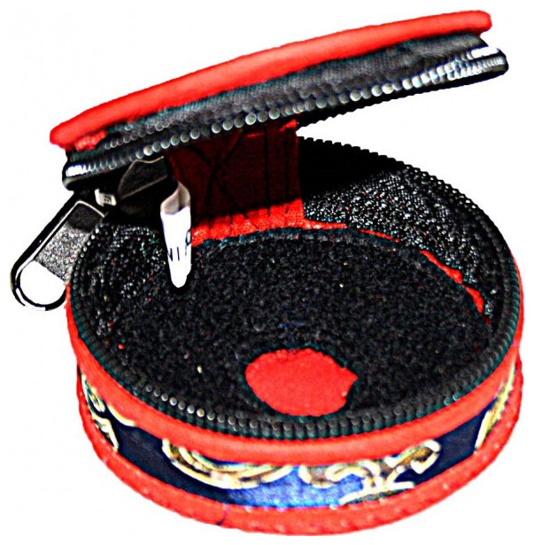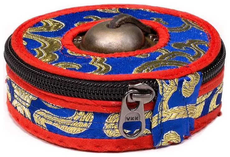 Θήκη για Κύμβαλα Διαλογισμού-Τingsha Case σε Μπροκάρ σχέδιο για να προστατεύσετε τα Κύμβαλα Διαλογισμού. Η Θήκη Κυμβάλων είναι κατασκευασμένη από μπλε, κόκκινο και μαύρο βαμβάκι. Διαθέτει εσωτερική επένδυση και ενδιάμεσα βαμβακερό δαχτυλίδι. Όμορφο φινίρισμα με φερμουάρ, ιδανική για Tingsha διαμέτρου 5,5 έως 7,5 cm.
