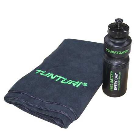 Σετ πετσέτα και μπουκάλι με την υπογραφή της κορυφαίας εταιρείας Tunturi, ιδανική για κάθε αθλητή! Η πετσέτα είναι κατασκευασμένη από 100% βαμβάκι και είναι κατάλληλη για να στεγνώνετε τον ιδρώτα ή για να την τοποθετείτε πάνω στα όργανα γυμναστικής για να εκτελέσετε τις ασκήσεις. Το μπουκάλι χωρητικότητας 800ml είναι κατασκευασμένο από συνθετικό υλικό και είναι ιδανικό για να σας ενυδατώνει κατά τη διάρκεια της γυμναστικής.
