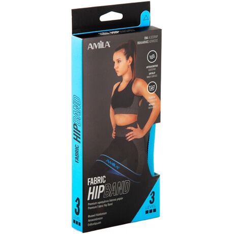 To AMILA Fabric HipBand είναι ένα κυκλικό λάστιχο αντίστασης κατασκευασμένο από ελαφρύ ύφασμα το οποίο είναι ιδιαίτερα απαλό και φιλικό προς το δέρμα. Διατίθεται σε 3 διαφορετικές αντιστάσεις για να επιλέξετε αυτή που σας ταιριάζει περισσότερο. Χρησιμοποιείται για ασκήσεις ενδυνάμωσης ποδιών και γλουτών. Τοποθετείται στους αστραγάλους, τα γόνατα ή τους μηρούς, παρέχοντας γραμμική αντίσταση. Στην εσωτερική πλευρά το AMILA Fabric HipBand διαθέτει κυματιστές γραμμές σιλικόνης, οι οποίες συγκρατούν το λάστιχο στην θέση του, προσφέροντας έτσι υψηλή ποιότητα προπόνησης. Χρησιμοποιώντας ένα AMILA Fabric HipBand θα ενεργοποιήσετε πολύ πιο εύκολα και άμεσα όλους τους γλουτιαίους μυς (μεγάλο, μεσαίο, μικρό) προσφέροντας πιο αποτελεσματική προπόνηση. Η συνεχής ένταση των μυών που δημιουργείται από το τέντωμα και χαλάρωμα του HipBand εκτελώντας όλες τις δυνατές κινήσεις του γοφού (κάμψη, έκταση, απαγωγή, προσαγωγή, εξωτερική/εσωτερική περιστροφή) θα σας βοηθήσει στην γενικότερη απόδοση σας καθώς θα βελτιώσει την δυνατότητα μετάδοσης της δύναμης από το κάτω προς το άνω μέρος του σώματος σας. Ξεκινήστε σήμερα την προπόνηση σας με ένα AMILA Fabric HipBand και δείτε άμεσα τα αποτελέσματα. Τα λάστιχα αντίστασης AMILA χρησιμοποιούνται λόγω της υψηλής τους αντοχής και σε επαγγελματικό επίπεδο αλλά και από πολλούς αθλητές και γυμναστές.