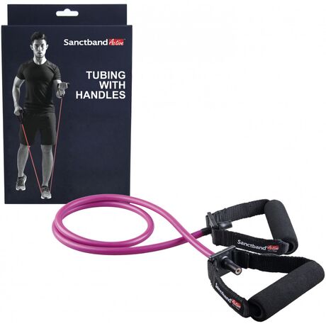 Το νέο Sanctband Active Gymtube 88267 παράγεται με μια ξεχωριστή διαδικασία, διαφορετική από τα άλλα σωληνωτά λάστιχα. Ο τρόπος παραγωγής του γίνεται με βουτήγματα (40-60 για κάθε λάστιχο) έτσι ώστε να διατηρούν την μέγιστη δυνατή ποιότητα. Αυτή η τεχνολογία εγγυάται την ζωντάνια του χρώματος, τις διαστάσεις αλλά και την ασφάλεια. Τα λάστιχα αντίστασης είναι γνωστά για την αντοχή τους έναντι στο σπάσιμο. Χρησιμοποιούνται ευρέως σε προπονήσεις με αντιστάσεις σε διάφορα αθλήματα για υψηλότερες αποδώσεις, σε προπονήσεις τόνωσης και ενδυνάμωσης των μυών, όπως και επίσης για ασκήσεις αποκατάστασης και φυσικοθεραπείας μετά από επέμβαση ή ατύχημα. Επίσης χρησιμοποιείται στο Pilates και την Yoga. Είναι κατασκευασμένα από φυσικό latex χαμηλότερης πρωτεΐνης και χωρίς την ανάγκη ύπαρξης πούδρας κάνοντας τα ιδανικά για την επαφή με το δέρμα αποφεύγοντας ερεθισμούς και δυσφορία στο χρήστη! Για τους παραπάνω λόγους τα λάστιχα της Sanctband καθίστανται ιδανικά για χρήστες με αλλεργίες και ευαισθησίες, καθώς επίσης είναι προϊόντα φιλικά προς το περιβάλλον! Οι λαβές έχουν μια επένδυση για να παρέχουν άνετο και ασφαλή κράτημα, καθιστώντας τα μια εξαιρετική επιλογή για την λειτουργική προπόνηση καθώς και για πολύ-επίπεδες κινήσεις. Τέλος το πακέτο έρχεται με άγκιστρο στερέωσης για την πόρτα σας.
