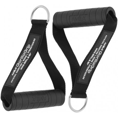 Λαβή Gorilla Grip από την εταιρεία Amila, ιδανική για λάστιχα Gym Tube με Clip. Η λαβή της Amila είναι ίσως η καλύτερη λαβή που έχετε πιάσει ποτέ. Είναι κατασκευασμένη από σκληρό πλαστικό εσωτερικά, ενισχυμένη εξωτερικά από λάστιχο για να μην γλιστράει, ενώ ταυτοχρόνως αντέχει την επαφή με τον ιδρώτα χωρίς το πρόβλημα του «πανιάσματος». ¨Όποιος δοκιμάσει τη συγκεκριμένη λαβή δύσκολα θα ξαναγυρίσει πίσω στις κλασσικές με επένδυση foam ή ακόμα και σε αυτές του γυμναστηρίου. Το ειδικό καλούπι τους προκύπτει από μελέτη πάνω σε χέρια αθλητών για να έχουν το τέλειο grip. Η διάμετρος της λαβής είναι 35,5 χιλιοστά, μεγαλύτερη από τη συνηθισμένη από foam 30 χιλιοστών, κάτι που βελτιώνει την αποδοτικότητα της άσκησης, επιφέροντας πολύ πιο γρήγορα τα επιθυμητά αποτελέσματα. Το μήκος της λαβής είναι στα 13 εκατοστά, μέγεθος ικανοποιητικό για αυτούς που έχουν μεγάλα χέρια. Ο ιμάντας κατασκευάζεται από υψηλής ποιότητας Nylon 3,8 εκατοστών, ενώ στην άκρη έχει ένα D ring ικανό να αντέξει πολλά κιλά! Προμηθευτείτε το δικό σας ζευγάρι και αλλάξτε τις κλασσικές λαβές με τις Gorilla Grip, για την προπόνηση στο σπίτι, αλλά και στο γυμναστήριο, με την υπογραφή της Amila!