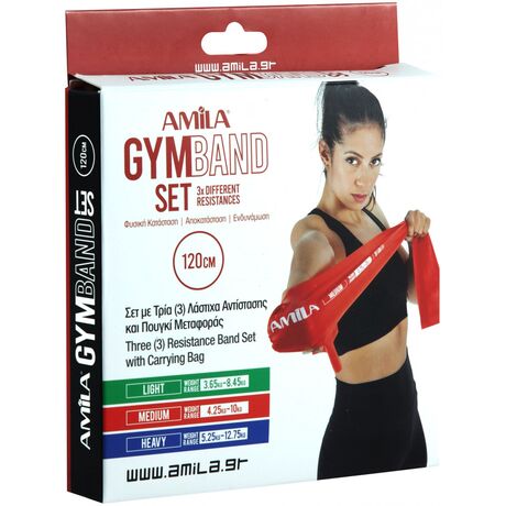 Σετ 3ών Gymband 1.2m Πράσινο, Κόκκινο & Μπλε Amila Κωδ. 48178
