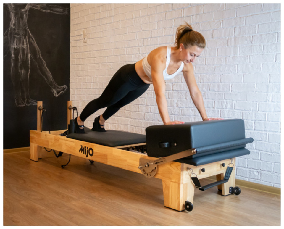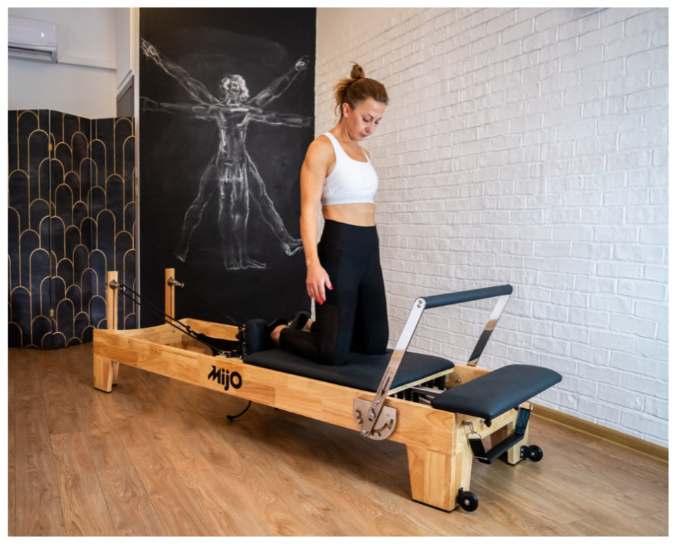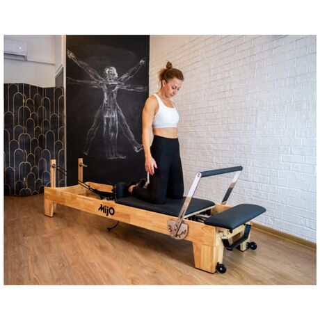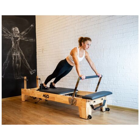 Ξύλινο κρεβάτι Pilates Reformer, ανθεκτικό και κομψό για άνετη άσκηση, με την υπογραφή της ελληνικής εταιρείας Mijo.
