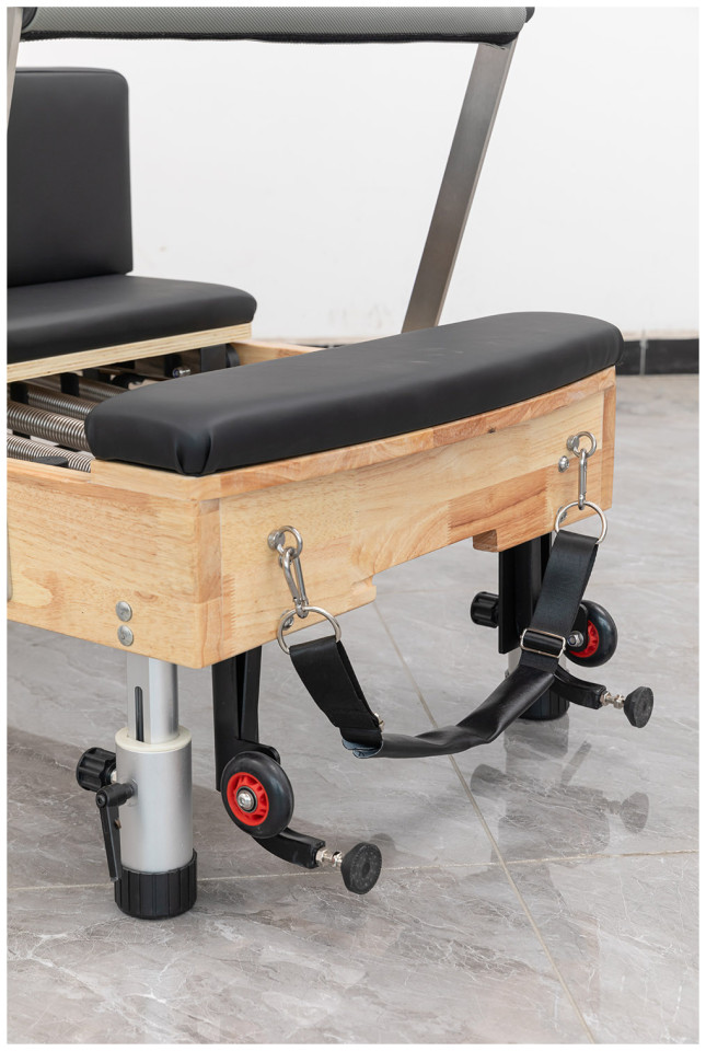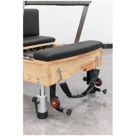 Το Ξύλινο Κρεβάτι Pilates Reformer Height Adjustable Viking είναι η ιδανική επιλογή για επαγγελματική ή οικιακή χρήση. Με ισχυρό μασίφ σκελετό από ξύλο Δρυός και ποιοτικά μαξιλάρια, προσφέρει άνεση και ασφάλεια κατά την άσκηση. Η καινοτόμος ρύθμιση ύψους με αλουμινένια ποδαράκια επιτρέπει την προσαρμογή του κρεβατιού στις ανάγκες σας. Επιπλέον, διαθέτει ειδικά στηρίγματα για αποθήκευση σε όρθια θέση, εξοικονομώντας πολύτιμο χώρο. Το κρεβάτι περιλαμβάνει όλα τα απαραίτητα αξεσουάρ για ένα πλήρες πρόγραμμα ασκήσεων, όπως το Jumb Board και το Sitting Box. Με έξι ελατήρια από ατσάλι υψηλής αντοχής, ανατομικό προσκέφαλο και ρυθμιζόμενα μαξιλάρια στήριξης, είναι σχεδιασμένο για να υποστηρίζει χρήστες έως 150 κιλά. Η κίνηση της πλατφόρμας είναι ομαλή και απρόσκοπτη, χάρη στις ράγες INOX. Με βάρος 74 κιλά και διαστάσεις 236x70x35 εκατοστά, το κρεβάτι συνοδεύεται από 2 έτη εγγύηση, εξασφαλίζοντας την ποιότητα και την αντοχή του.