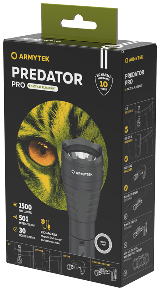 Φακό, μπαταρία, μαγνητικό φορτιστή, κλιπ, θήκη,κορδόνι ασφαλείας,προστατευτικό δακτύλιο σιλικόνης,οδηγίες χρήσης
