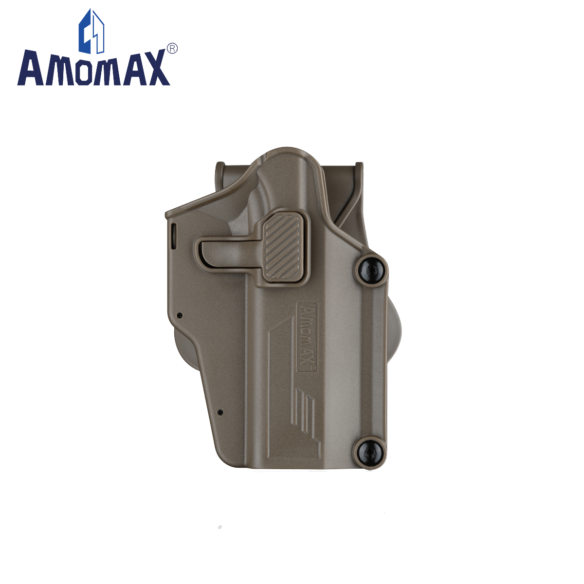Θήκη Πιστολιού Universal Per-Fit RH FDE συμβατή με περισσότερα από 80 airsoft ή πραγματικά πιστόλια, όπως Glock, Sig Sauer, CZ, Ruger, Springfield Armory, Beretta, Smith & Wesson, σειρά 1911 κ.λπ. Η κλασική απελευθέρωση με το δάχτυλο παρέχει ασφαλή συγκράτηση. Γραμμωτό φινίρισμα έχει προστεθεί στο κουμπί απελευθέρωσης, παρέχοντας πολύ καλή, επιχειρησιακή αίσθηση. Ένα αρχικό σφίξιμο είναι βασικό για να λειτουργεί τέλεια η θήκη. Ξεσφίξτε τις 2 μπροστινές βίδες, Τοποθετήστε το πιστόλι στη θήκη και ρυθμίστε το χώρο για να ταιριάζει στο πιστόλι σας χαλαρώνοντας ή σφίγγοντας τις βίδες. Η θήκη Per-Fit είναι συμβατή με 4 διαφορετικές πλατφόρμες μεταφοράς – κουπί (στάνταρ), κλιπ ζώνης, MOLLE και πλατφόρμα μηρού. Το σώμα της θήκης περιστρέφεται 360 μοίρες. Οι χρήστες μπορούν εύκολα να προσαρμόσουν τη θέση μεταφοράς.