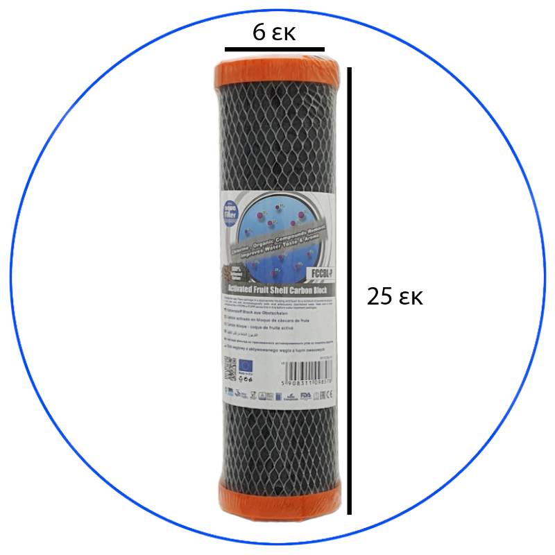 Το Φίλτρο Συμπαγούς Ενεργού Άνθρακα FCCBL-P 10'' είναι ένα προϊόν υψηλής ποιότητας που κατασκευάζεται από την Aqua Filter. Αυτό το φίλτρο είναι σχεδιασμένο για να προσφέρει πλήρη φίλτρανση του νερού, απομακρύνοντας χλώριο, οργανικά και χημικά ρύπους, φυτοφάρμακα, καθώς και δυσάρεστες οσμές και γεύσεις. Η μοναδική του σύνθεση περιλαμβάνει 50% φλοιό φιστικιού και 50% συμπαγή ενεργό άνθρακα, πιστοποιημένα κατά NSF, εξασφαλίζοντας την ασφάλεια και την αποτελεσματικότητα του προϊόντος.