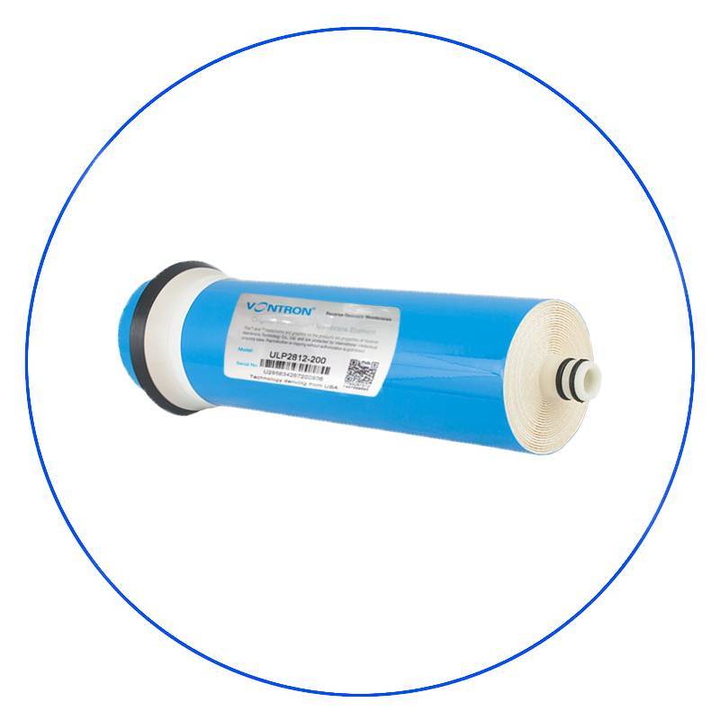 Η μεμβράνη αντίστροφης όσμωσης 200 GPD της VONTRON αφαιρεί με διαπερατότητα 0.0001 micron από το νερό, τους μολυσματικούς παράγοντες που μπορεί να υπάρχουν, όπως μόλυβδος, αρσενικό, βάριο, χρώμιο, υδράργυρος, νάτριο, κάδμιο, φθορίδιο, νιτρώδες άλας, νιτρικό άλας και σελήνιο.