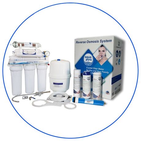 Οικιακή Μονάδα Αντίστροφης Ώσμωσης Aqua Pure APRO Alkaline πλήρες και αξιόπιστο μοντέλο αντίστροφης όσμωσης επτά σταδίων με δοχείο αποθήκευσης 11 λίτρων για τοποθέτηση κάτω από τον πάγκο της κουζίνας. Η τεχνολογία της αντίστροφης όσμωσης αποτελεί την καλύτερη μέθοδο καθαρισμού του νερού βρύσης. Tα επτά στάδια φίλτρανσης του συστήματος επιτυγχάνουν τη δραστική μείωση έως και 97% των εξής στοιχείων: Χρώμιο, Χλώριο, Αρσενικό Αργίλιο, Αμμωνία, Χαλκό, Υδράργυρο, Ουράνιο, Φυτοφάρμακα, Φωσφορικά, Βακτηρίδια, Βάριο, Βενζόλιο, Διττανθρακικό άλας, Βορικό άλας (βόριο), Βρώμιο (βρωμίδιο), Κάδμιο, Ασβέστιο, Διοξείδιο του άνθρακα, Carbontetrachloride, Χλωρίδιο, Χρώμα, Κυάνιο, Cyptosporidium, Φθορίδιο, Giardia Lamblia, Σκληρότητα, Σουλφίδιο υδρογόνου, Σίδηρος, Μόλυβδος, Legionella, Μαγνήσιο, Μαγγάνιο, Υδράργυρος, Μεθάνιο, Νικέλιο, Νιτρικό άλας, Νιτρώδες άλας, Μυρωδιά, Οργανικές ουσίες, Κάλιο, Ράδιο, Ραδόνιο, Selentum, Πυρίτιο, Ασήμι, SOC, Νάτριο, Στρόντιο, Θειικό άλας, THM, TOC, Διαλυμένα στερεά, Θολούρα, Ιοί, VOCs, κ.α. Όλα τα συστήματα της εταιρείας μας είναι εύκολα στην εγκατάσταση και συντήρησή ώστε οι πελάτες μας να μπορούν εύκολα και οικονομικά να χρησιμοποιήσουν τα φίλτρα μας για πολλά χρόνια. Όλα τα υλικά φίλτρανσης των συστημάτων μας είναι πλήρως πιστοποιημένα με τα αυστηρότερα πρότυπα (NSF, FDA ,ΙSO).
