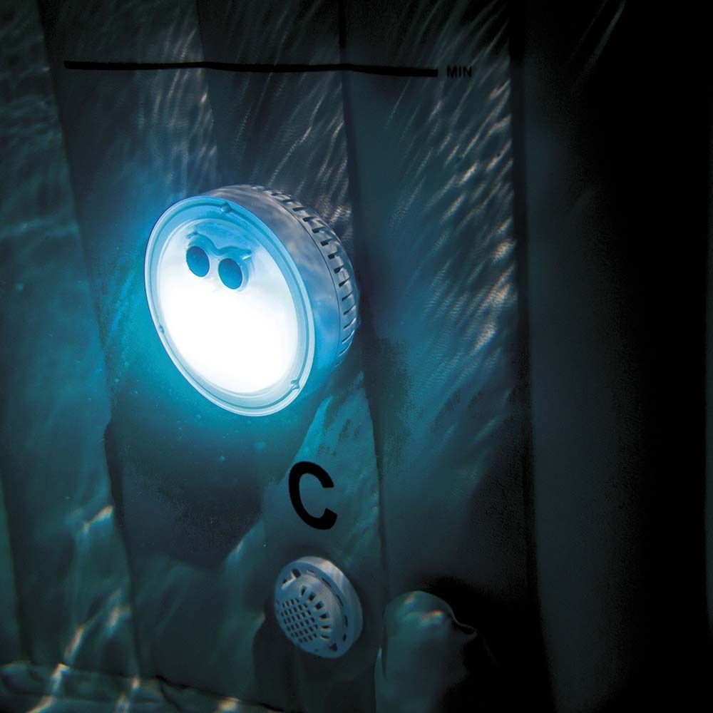 Εντυπωσιακή λυχνία Led από την Intex είναι κατάλληλη για να δημιουργήσετε μία απίστευτη ατμόσφαιρα στο τζακούζι σας και να απολαύσετε την εμπειρία του Spa ακόμα τις βραδινές ώρες. Είναι κατάλληλη για τα Intex Spa 28402, 28404, 28414 & 28408. Ο φωτισμός διεξάγεται μέσω λαμπτήρων Led, οι οποίοι αποδίδουν έντονο και βαθύ φως, 5 διαφορετικών χρωματισμών όπως το λευκό, το πράσινο, το μπλε, το τιρκουάζ και μοβ. Λειτουργεί με την χρήση 3 μπαταριών ΑΑΑ (δεν περιλαμβάνονται στη συσκευασία) και έχει πολύ χαμηλή κατανάλωση ρεύματος μόλις 1 watt και έχει αυτόματο χρονοδιακόπτη, ο οποίος απενεργοποιεί τον λαμπτήρα αφού παρέλθουν 2 ώρες καύσης. Επίσης δίνει την δυνατότητα ρύθμισης λειτουργίας φωτισμού με επιλογές είτε σε στατικό είτε στον εναλλασσόμενο. Η LED λυχνία είναι εύκολη στη συναρμολόγηση σε όλα τα μοντέλα Intex Pure Spa Bubble και δεν απαιτείται η σύνδεσή της στο δίκτυο της αντλίας, καθώς λειτουργεί με ρεύμα μέσω των μπαταριών. Δημιουργήστε την τέλεια ατμόσφαιρα χαλάρωσης και χαρίστε στον εαυτό σας υπέροχες στιγμές αναζωογόνησης και ευεξίας. Το φανταστικό αξεσουάρ που δεν πρέπει να λείπει από κανένα SPA της Intex!