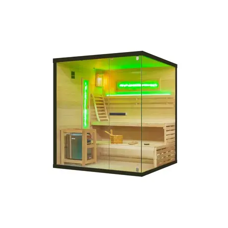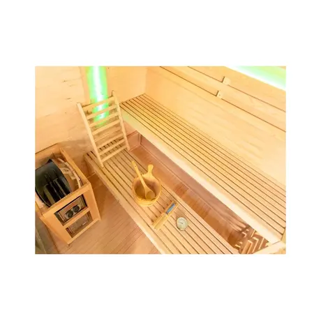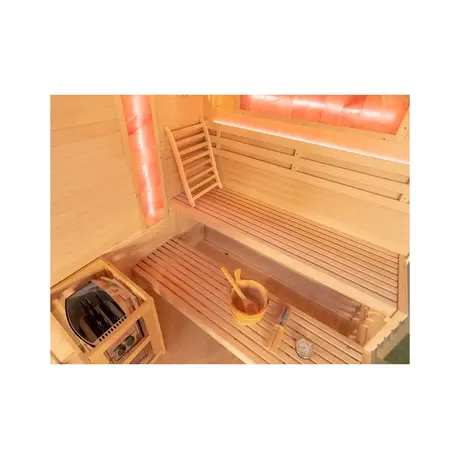 Ανακαλύψτε την παραδοσιακή φιλανδική σάουνα PALO 4 ατόμων από την MOUNTFIELD, ιδανική για να απολαύσετε στιγμές χαλάρωσης και ευεξίας. Κατασκευασμένη από υψηλής ποιότητας έλατο Καναδικό, αυτή η σάουνα προσφέρει εξαιρετική θερμομόνωση χάρη στον ορυκτοβάμβακα που χρησιμοποιείται. Με διαστάσεις 180 Χ 160 Χ 200 cm, είναι ιδανική για οικογένειες ή παρέες φίλων. Η χωρητικότητα των 4 ατόμων σας επιτρέπει να απολαμβάνετε την εμπειρία της σάουνας με άνεση. Η πόρτα από γυαλί ασφαλείας προσφέρει ασφάλεια και στυλ, ενώ το σύστημα εσωτερικού φωτισμού με RGB φωτισμό δημιουργεί μια μαγευτική ατμόσφαιρα. Επιπλέον, η δυνατότητα αρωματοθεραπείας θα σας ταξιδέψει σε κόσμους ευεξίας. Η σάουνα έρχεται σε συσκευασία με διαστάσεις 184x131x24 cm και βάρος 205 Kg, ενώ η εγγύηση 2 ετών εξασφαλίζει την ποιότητα και την αντοχή της. Για την καλύτερη θέρμανση, προτείνεται η χρήση σόμπας από 8 Kw και άνω.