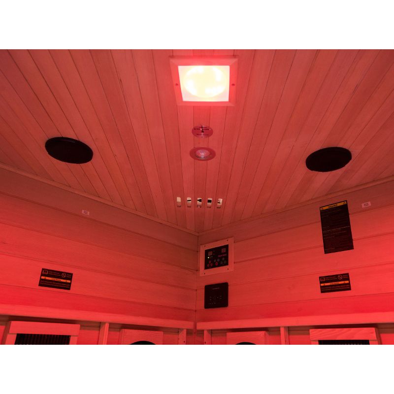 Η σάουνα υπερύθρων Salome της Τσέχικης εταιρείας Mountfield, είναι κατάλληλη για 3-4 άτομα με διαστάσεις 150 x 150 x 190 εκατοστά και κατανάλωση ενέργειας 2.34 kW. Είναι κατασκευασμένη από ξύλο καναδικής τσούγκας το οποίο έχει εξαιρετικές θερμομονωτικές ιδιότητες, δεν περιέχει ρητίνη και είναι άοσμο, ενώ ο εργονομικός σχεδιασμός της σάουνας, υπόσχεται να μεταμορφώσει τη διαμονή σας σε μία νέα εμπειρία χαλάρωσης. Διαθέτει υψηλής ποιότητας εξοπλισμό, όπως για παράδειγμα στήριγμα για την πλάτη, αισθητήρα θερμοκρασίας, εσωτερικό πίνακα ελέγχου, ιονιστή, ραδιόφωνο / mp3 με τηλεχειριστήριο και δυνατότητα χρήσης USB, ράφι για τα ποτά σας και κρεμάστρα για την πετσέτα, ενώ η λειτουργία της πραγματοποιείτε σε δίκτυο τάσης 230/50 V/Hz. Εξοπλισμένη με φωτισμό για φωτοθεραπεία προσφέρει την δυνατότητα επιλογής ενός χρωματικού τόνου για να τελειοποιήσετε την ατμόσφαιρα, σύμφωνα με τη διάθεσή σας. Κάθε χρώμα έχει σημαντική επίδραση στην ενέργεια του σώματός μας. Για παράδειγμα, το κίτρινο μας ενεργοποιεί, το πράσινο εναρμονίζει, το πορτοκαλί δημιουργεί μία αίσθηση ασφάλειας και χαράς, το λευκό ενεργοποιεί, το γαλάζιο καταπραΰνει, το μωβ βοηθάει στην αϋπνία και το κόκκινο ανακουφίζει από την κατάθλιψη. Ο ιονιστής εμπλουτίζει τον αέρα που αναπνέουμε, έτσι, η φρεσκάδα και η καθαρότητα που προκύπτει μοιάζει εκπληκτικά με τον αέρα ψηλά στα βουνά ή τη θάλασσα. Παράλληλα, καταστρέφει αποτελεσματικά τους μικροοργανισμούς και περιλαμβάνει μια γεννήτρια όζοντος, η οποία απολυμαίνει και δρα θετικά στο ανθρώπινο σώμα! Οι κεραμικοί αλλά και οι κόκκινου φωτός θερμαντήρες πετυχαίνουν πολύ γρήγορα την επιθυμητή θερμοκρασία του εσωτερικού θαλάμου. Συνεπώς, απαιτούνται λιγότεροι εκπομποί. Όσον αφορά τους κεραμικούς, το κόστος αγοράς τους είναι χαμηλότερο απ' ότι για άλλους τύπους θερμαντήρων. Η διάρκεια ζωής και των δύο είναι περίπου 8.000 ώρες σε κανονική λειτουργία (περίπου 45 λεπτά/3 φορές την εβδομάδα) που σημαίνει περίπου 60 χρόνια. Οι θερμαντήρες κόκκινου φωτός είναι κατασκευασμένοι από σωλήνες γυάλινου χαλαζία, οι οποίοι εκπέμπουν έντονη ακτινοβολούμενη θερμότητα και φως, συνεπώς, ενισχύουν όλα τα ευεργετικά θεραπευτικά αποτελέσματα.