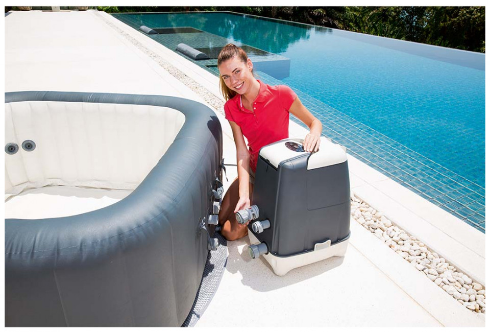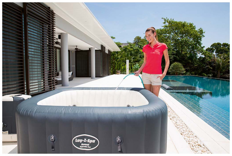 Το Φουσκωτό spa Hawaii Hydrojet είναι ένα φανταστικό φουσκωτό τζακούζι χωρητικότητας 6 ατόμων, το οποίο έχει τη δυνατότητα να καταπολεμήσει το αίσθημα κούρασης που σας περιβάλλει και να σας χαρίσει μια ασύγκριτη αίσθηση ευεξίας, μόνο με το πάτημα ενός κουμπιού! Σε τετράγωνο σχήμα, διαθέτει έναν εύκολο στην χρήση πίνακα ελέγχου, που ενεργοποιεί τα 140 air jets υψηλής απόδοσης, τα οποίοι βρίσκονται στο εσωτερικό του υδρομασάζ, με σκοπό να σας προσφέρουν ένα αναζωογονητικό μασάζ. Με χωρητικότητα νερού 795 λίτρα, και αύξηση θερμοκρασίας 1,5 - 2,0 °C ανά ώρα, 2 επίπεδα εκτόξευσης φυσαλίδων, προσαρμόζεται ώστε να ταιριάζει με τις προσωπικές σας προτιμήσεις. Στην συσκευασία περιλαμβάνεται χειριστήριο,1 κάλυμμα πισίνας, 1 αντλία spa, συσκευή φίλτρου (VI), 1 φίλτρο ChemConnect, σετ επισκευής. Αποκτήστε το τώρα στον δικό σας προσωπικό χώρο και νιώστε τις ευεργετικές ιδιότητες του υδρομασάζ στο σώμα και το πνεύμα σας, παρέα με αγαπημένους σας φίλους και συγγενείς, ή ακόμη και απολαμβάνοντας την μοναξιά σας χαρίζοντας στον εαυτό σας μια θαυμάσια εμπειρία ηρεμίας!