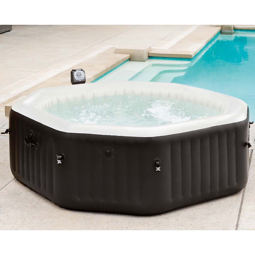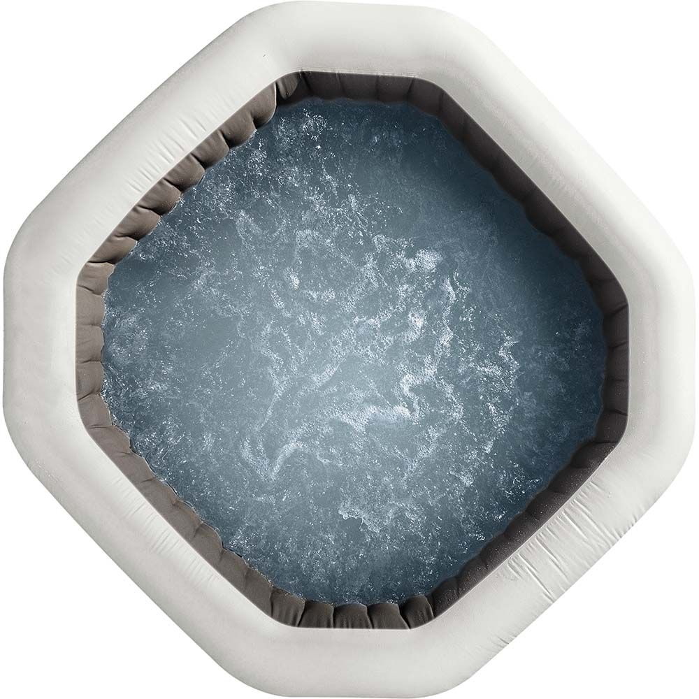 To Φουσκωτό Τζακούζι Pure Spa Jet & Bubble Deluxe INTEX 28458 - 4 ατόμων με νέα κονσόλα με την πρωτοποριακή τεχνολογία αερισμού και φιλτραρίσματος, απελευθερώνοντας τα απαραίτητα αρνητικά ιόντα, σου προσφέρει την πιο υγιεινή απόλαυση που υπάρχει! Το ανθεκτικό εξωτερικό του με τα 2 επίπεδα PVC με ενισχυμένο πολυεστερικό πλέγμα ανάμεσά τους κάνουν το τζακούζι να μην βουλιάζει, ώστε να απολαύσεις το τζακούζι σου σου με άνεση! Με τον ΝΕΟ πίνακα ελέγχου να είναι πολύ εύκολος στη χρήση του και τη δυνατότητα ασύρματης φόρτισης, παρέχει μέχρι 48 ώρες ασύρματη χρήση σε κάθε φόρτιση! Με το σύστημα αλατόνερου που χρησιμοποιεί, ξεχάστε τα χημικά καθαριστικά! Το αντικαθιστούμενο φίλτρο αντλίας (#29001, περιλαμβάνονται 2 τμχ), εξασφαλίζει την υγιεινή που έχετε ανάγκη! Με το ύφασμα προστασίας του κάτω μέρους του και το κάλυμμα με αγκράφες που κλειδώνουν ελαχιστοποιείτε η απώλεια θερμοκρασίας του νερού! Με το οκταγωνικό του σχήμα, χωρητικότητας 4 ατόμων και την δυνατότητα τοποθέτησης 2 μαξιλαριών, μπορείτε να μοιραστείτε αυτή την πολυτέλεια με τους φίλους σας!