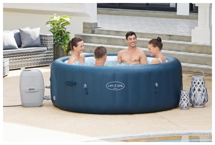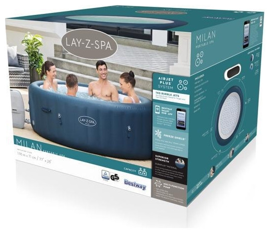 Φουσκωτό Υδρομασάζ Lay-Z-Spa με άνετες διαστάσεις 1.96x0.71 cm και εσωτερική διάσταση 1.46cm για να χωρά με άνεση 4 έως 6 ενήλικες. Απολαύστε ξέγνοιαστες στιγμές χαλάρωσης, αναζωογονήστε το μυαλό και το σώμα σας σε θερμοκρασίες νερού έως και 40 βαθμούς κελσίου. Εσείς απλά επιλέγετε την θερμοκρασία που θέλετε να έχει το νερό και το σύστημα ταχείας θέρμανσης το φέρνει στα επιθυμητά στάδια. Με νέο σύστημα μασάζ AirJet Plus διαθέτει βελτιωμένη διάταξη που απελευθερώνει φυσαλίδες από το κέντρο της βάσης και από τα πλευρικά τοιχώματα για να στοχεύει στα πόδια και την πλάτη. Ο ψηφιακός πίνακας ελέγχου και η αντλία σπα, με ενσωματωμένο σύστημα φιλτραρίσματος συμπεριλαμβάνουν δυο θήκες υποδοχής για ποτήρια και είναι προσβάσιμα από το εσωτερικό του σπα.