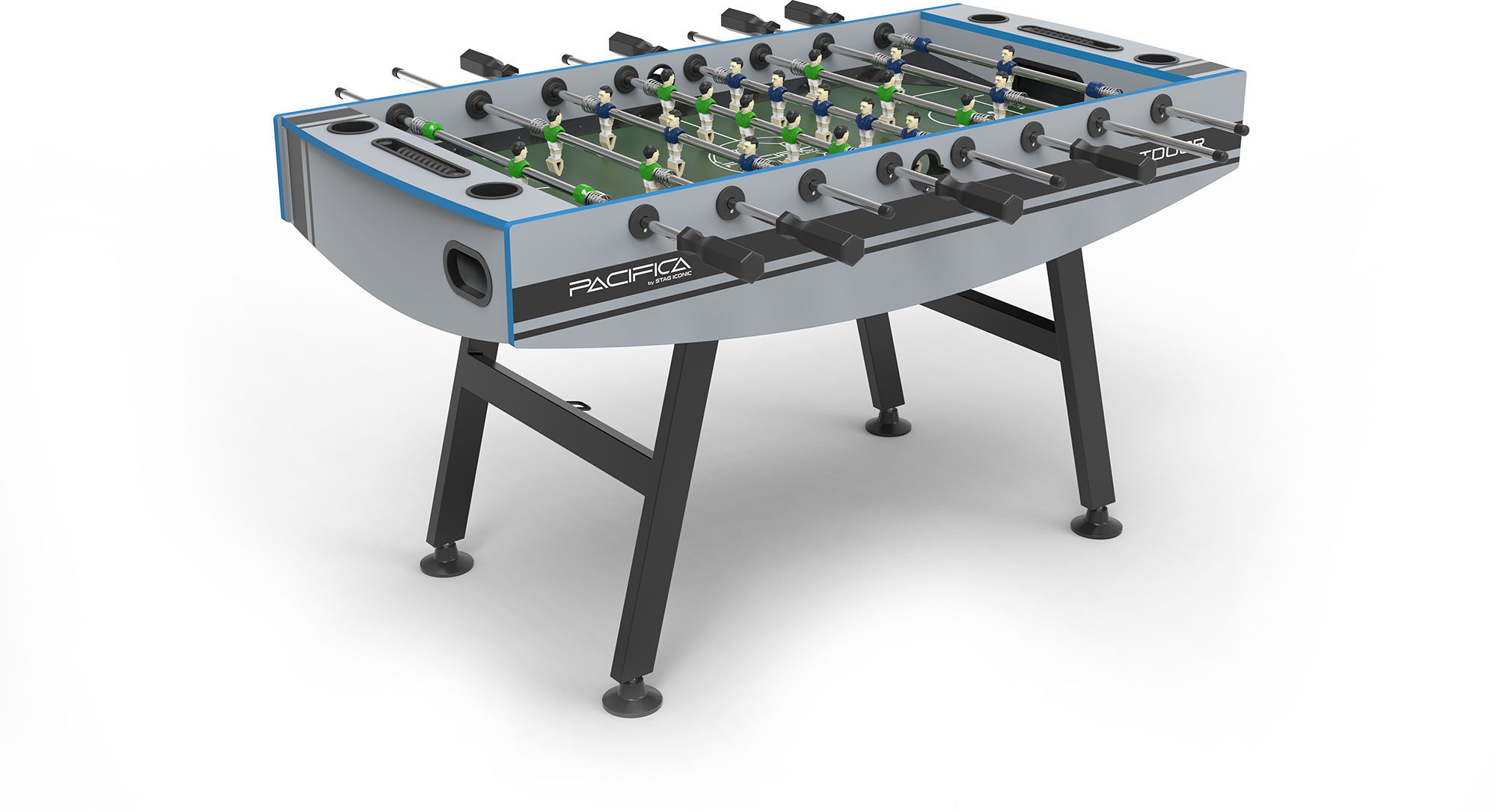 Ποδοσφαιράκι Εξωτερικού Χώρου Pacifica Stag κατασκευασμένο από υλικά υψηλής ποιότητας ανήκει στην κατηγορία των Premium. Οι ράβδοι είναι από ανοξείδωτο ατσάλι, με έναν μοναδικό σχεδιασμό για να κρατάει τους παίχτες για χρόνια. Οι λαβές είναι σχεδιασμένες έτσι ώστε να παρέχουν κορυφαίο σταθερό grip (με αριστερόστροφο σπείρωμα), και να μην χάνεται η επαφή κατά την διάρκεια του παιχνιδιού. Η επιφάνεια παιχνιδιού διαθέτει την τεχνολογία PROTEC, την οποία βρίσκουμε και στα εξωτερικού χώρου Ping Pong της εταιρίας. Το ξύλο είναι από μελαμίνη με επιστρώσεις κατά της ακτινοβολίας του ήλιου. Οι ποδιές είναι και αυτές από μελαμίνη 15 χιλιοστών οι οποίες προσδίδουν μια αίσθηση και εμφάνιση επαγγελματικού επιπέδου. Ο σκελετός είναι από γαλβανισμένο ατσάλι με επιστρώσεις για την σκουριά.