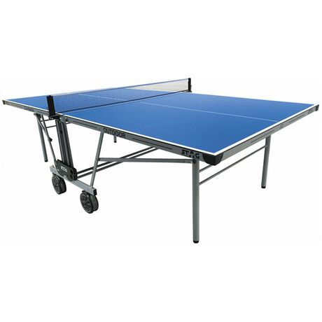 Τραπέζι ping pong Cayman εξωτερικού χώρου από την εταιρεία Stag. Πρόκειται για ένα πτυσσόμενο τραπέζι εύκολο στην αποθήκευση καθώς μικραίνει ο όγκος του. Επίσης μπορείτε να διπλώσετε μόνο την μία πλευρά του, άρα να προπονηθείτε χωρίς να υπάρχει αντίπαλος. Ο σκελετός του είναι περασμένος με ηλεκτροστατική βαφή ενώ η επιφάνεια παιξίματος έχει αντιθαμβωτικό φινίρισμα που την καθηστά ανθεκτική σε γκρατζουνιές και ξεθώριασμα του χρώματος. Διαθέτει ρυθμιζόμενα πόδια, κεντρικό κλείδωμα, χειριζόμενο με το ένα χέρι, δίχτυ μόνιμο και εύκολα ρυθμιζόμενο όπως και γωνίες με προστατευτικά μαξιλαράκια για περισσότερη ασφάλεια. Στιβαρός σχεδιασμός - σταθερότητα ακόμα και σε ανώμαλα εδάφη. Η ποιότητα παιχνιδιού του εξωτερικού τραπεζιού Ping Pong θα καλύψει τους παίκτες όλων των επιπέδων