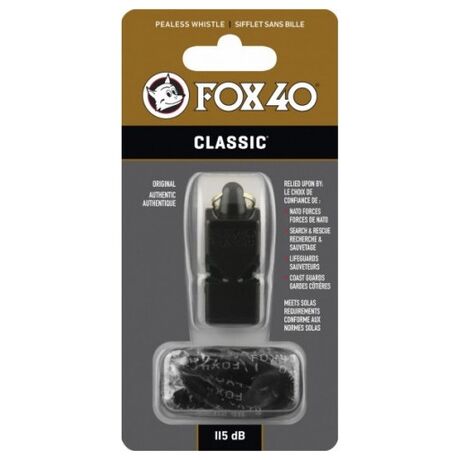 Σφυρίχτρα Πλαστική Μαύρη FOX40 Κωδ. 99030008, σχεδιασμένη με 3 αεροθαλάμους και ένταση στα 115dB για μέγιστη ακουστική στον χώρο! Διαθέτει κρίκο για να προσαρμόζεται με κορδόνι ή και σαν μπρελόκ για να την έχετε παντού μαζί σας! Το κορδόνι περιλαμβάνεται στην συσκευασία! Δεν διαθέτει λαβή δαχτύλων!