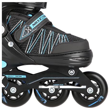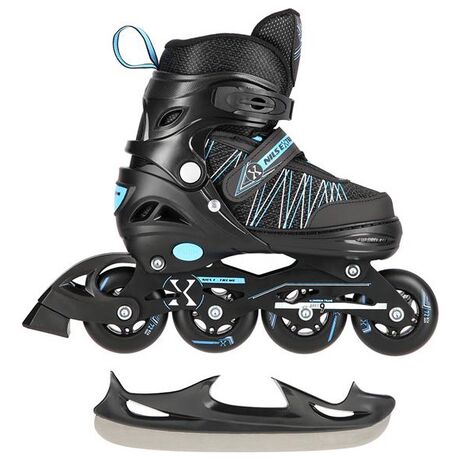 Τα rollers της κορυφαίας εταιρείας Nils είναι ένα μοντέλο 2 σε 1 το οποίο προσφέρει δύο διαμορφώσεις: πατίνια Inline Skates και πατίνια παγοπέδιλα, ειδικά σχεδιασμένα για αρχάριους και ενδιάμεσους χρήστες. Το μοντέλο αυτό διαθέτει λεπίδες από ανοξείδωτο χάλυβα υψηλής ποιότητας και σύστημα με πολλά πώματα που περιλαμβάνουν ιμάντα velcro, πόρπες και κορδόνια, τα οποία μαζί προσφέρουν ασφαλή εφαρμογή. Όλα αυτά κάνουν το μοντέλο να αποδίδει καλά σε όλες τις συνθήκες, παρέχοντας αξέχαστη εμπειρία κατά τη διάρκεια της προπόνησης. Η υψηλή ποιότητα τους εξασφαλίζει ανθεκτικότητα και αντοχή σε βλάβες και χτυπήματα. Τα inline πατίνια είναι εξοπλισμένα με μια ειδική αλουμινένια λεπίδα και ένα φρένο που εγγυάται την ασφάλεια του πατινάζ, ενώ διαθέτουν τροχούς και ρουλεμάν ABEC9 χάρη στα οποία μειώνεται η κυλιόμενη κίνηση και εγγυώνται ταχύτερη οδήγηση. Διαθέτουν επίσης ρύθμιση τεσσάρων βημάτων του μεγέθους της μπότας για ατομική εφαρμογή, με τον τρόπο αυτό μπορείτε να εξοικονομήσετε χρόνο και χρήματα, αφού αυτή η λύση παρατείνει τη διάρκεια ζωής τους, με αποτέλεσμα περισσότερα από ένα άτομα μπορούν να χρησιμοποιήσουν τα πατίνια.