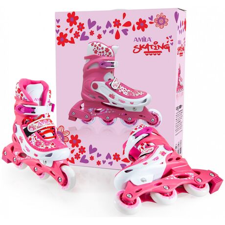 Με τα rollers In-Line Skate 48924 της Amila μπορείτε να αντικαταστήσετε το απλό περπάτημα με γρήγορες διαδρομές, συναρπαστικούς ελιγμούς και σε περιπτώσεις προχωρημένων χρηστών κάποιες περίτεχνες κινήσεις. Τα νούμερα στα οποία μπορεί να προσαρμοστεί το συγκεκριμένο roller κυμαίνετε από 35 έως 38 ώστε να έχετε την δυνατότητα να βρείτε ακριβώς το νούμερο που ταιριάζει στο δικό σας πόδι, αλλά και να το χρησιμοποιούν διαφορετικά άτομα, όλα απλά με μια κίνηση του χεριού χωρίς καμιά απολύτως δυσκολία. Οι 4 τροχοί παρέχουν περισσότερη επιφάνεια επαφής με το έδαφος και μεγαλύτερη σιγουριά στην περίπτωση που κάποιος φθαρεί, ενώ στο πίσω μέρος υπάρχει φρένο με το οποίο μειώνεται η ταχύτητα ή και ανακόπτεται τελείως η πορεία σας. Η ανθεκτική κατασκευή του In-Line Skate του επιτρέπει να αντέχει για αρκετά χρόνια στην κατοχή σας, για να προσφέρει πολλές στιγμές διασκέδασης και ευχαρίστησης, με επιπλέον πλεονέκτημα πως είναι και πολύ ελαφρύ για όλες τις μεταφορές.
