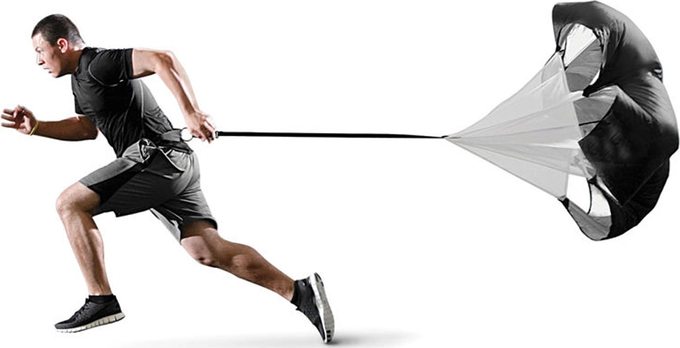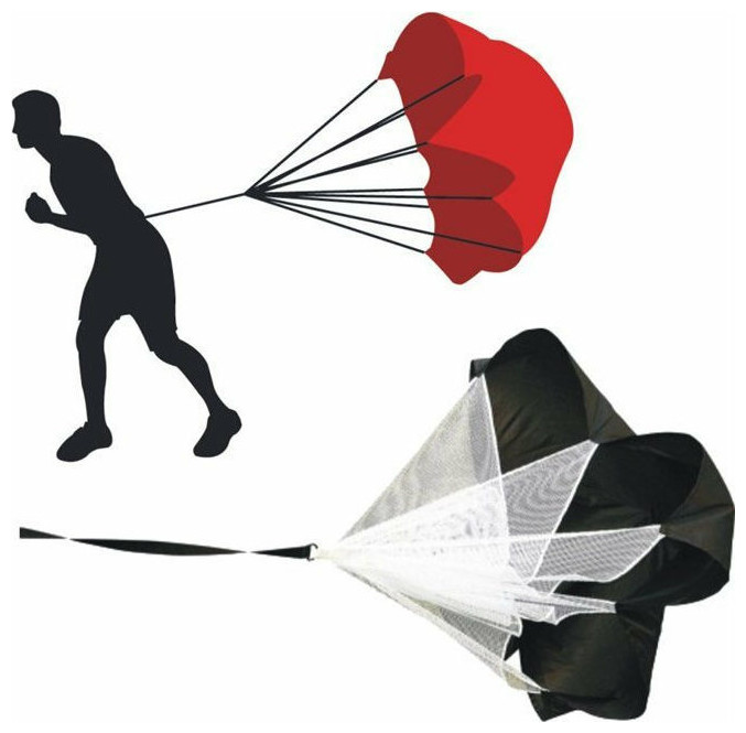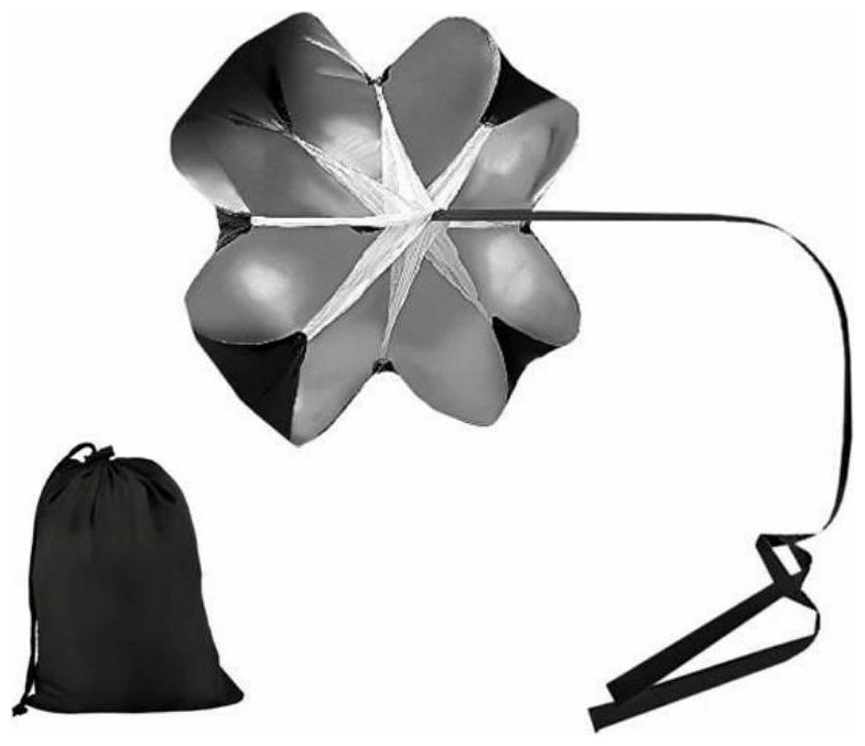 Το αλεξίπτωτο αντίστασης είναι το κατάλληλο εργαλείο για εσάς ώστε να βελτιώσετε την ταχύτητά σας! Δημιουργεί μια αντίσταση 5-15 κιλών (εξαρτώμενο από την ταχύτητα σας) η οποία βελτιώνει αποτελεσματικά την αντοχή, την εκρηκτικότητα, τον κορμό και τους μυες των ποδιών σας. Με το αλεξίπτωτο αυτό μπορείτε να προπονηθείτε προς οποιαδήποτε κατεύθυνση. Αυτό γίνεται χάρη στον ειδικό σχεδιασμό του συστήματος δεσίματος στην ζώνη που μπορεί να γυρίσει ο γάντζος του αλεξίπτωτου. Έτσι μπορείτε γρήγορα να αλλάξατε κατεύθυνση ενώ τρέχετε σε υψηλές ταχύτητες, το οποίο θα σας βοηθήσει σε πολλά αθλήματα που αυτό το χαρακτηριστικό είναι ιδιαίτερα σημαντικό, όπως στο ποδόσφαιρο. Δοκιμάστε την άσκηση με αλεξίπτωτο και δείτε την ταχύτητα σας να αυξάνεται σε κάθε σπριντ ενώ η αντοχής σας μεγαλώνει με κάθε προπόνηση! Για αυξημένη ενδυνάμωση της προπόνησής σας μεσω της αντίστασης που απαιτεί μεγαλύτερη προσπάθεια, ειδικά σε σύντομα σπριντ. Η προπόνησή σας αποδίδει καλύτερα αποτελέσματα όσον αφορά την δύναμη, την ταχύτητα και τη γενική φυσική κατάσταση. Είναι κατασκευασμένο από ειδικό ανθεκτικό υλικό για να παρέχει τα μέγιστα αποτελέσματα. Η χρήση του είναι εξαιρετικά απλή. Ο ιμάντας προσαρτημένος στη μέση με Velcro διευκολύνει τις γρήγορες αλλαγές κατεύθυνσης. Μπορεί να χρησιμοποιηθεί είτε από αρχάριους είτε από επαγγελματίες, ενώ η μεταφορά του στην τσάντα αποθήκευσης σας δίνει τη δυνατότητα να το πάρετε μαζί σας.
