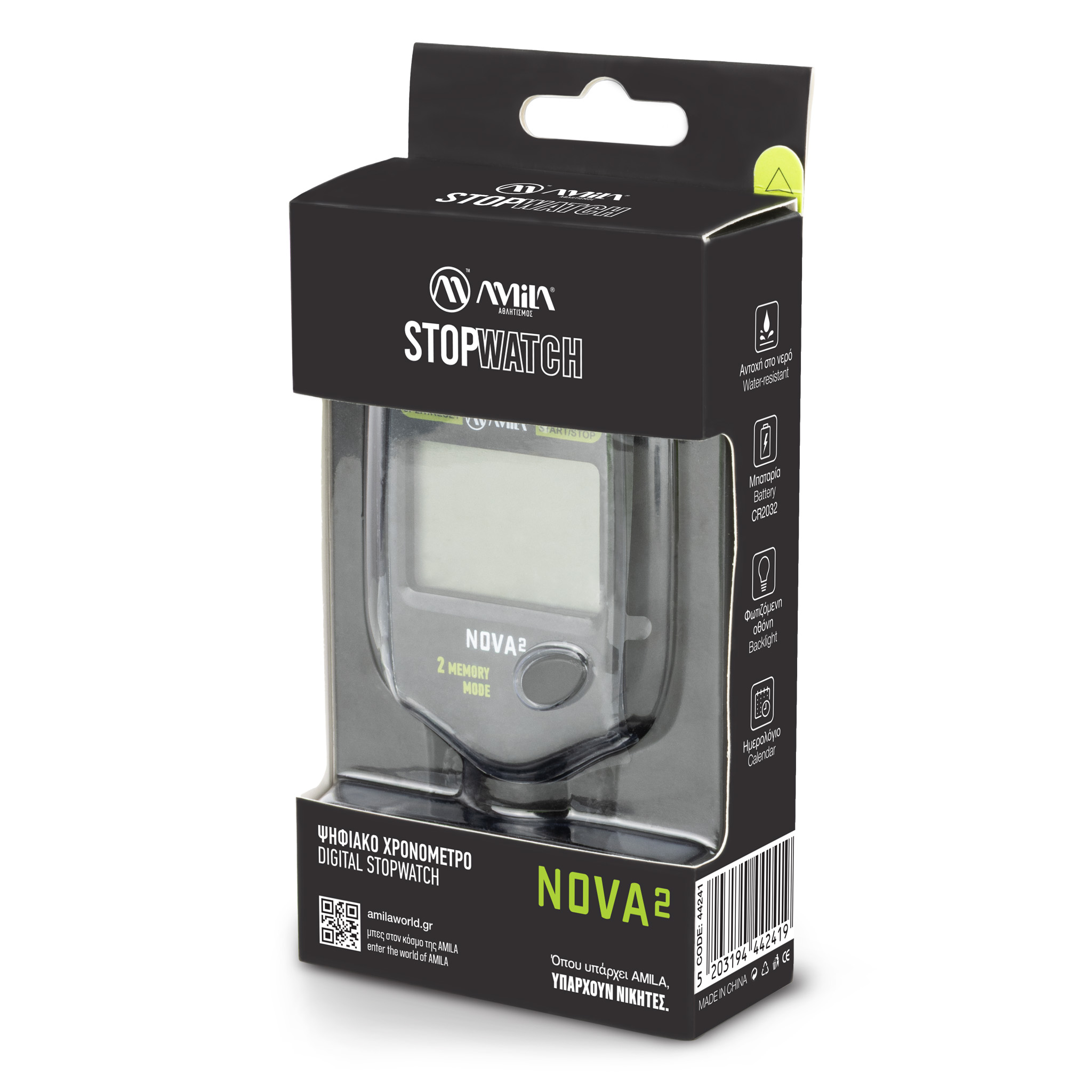 Το Ψηφιακό Χρονόμετρο Nova 2 (Κωδ. 44241) είναι η ιδανική επιλογή για τους λάτρεις του αθλητισμού και των δραστηριοτήτων που απαιτούν ακριβή μέτρηση χρόνου. Με βάρος μόλις 0.115 κιλά, είναι ελαφρύ και εύκολο στη μεταφορά. Διαθέτει ψηφιακή οθόνη που σας επιτρέπει να παρακολουθείτε τους γύρους σας με ευκολία. Το χρονόμετρο υποστηρίζει 12/24 ωρολόγιο και διαθέτει ημερολόγιο, ενώ μπορείτε να ρυθμίσετε συναγερμούς και να χρησιμοποιήσετε τη λειτουργία snooze για να μην χάσετε ποτέ μια προγραμματισμένη δραστηριότητα. Αν και δεν υποστηρίζει αντίστροφη μέτρηση, η δυνατότητα αποθήκευσης δύο μνημών σας επιτρέπει να παρακολουθείτε τις επιδόσεις σας. Το οπίσθιο φωτισμό διευκολύνει τη χρήση σε χαμηλό φωτισμό, ενώ η ανθεκτικότητα στο νερό εξασφαλίζει ότι μπορείτε να το χρησιμοποιείτε σε διάφορες συνθήκες. Το Ψηφιακό Χρονόμετρο Nova 2 λειτουργεί με μπαταρία CR2032, προσφέροντας μακρά διάρκεια ζωής και αξιόπιστη απόδοση.