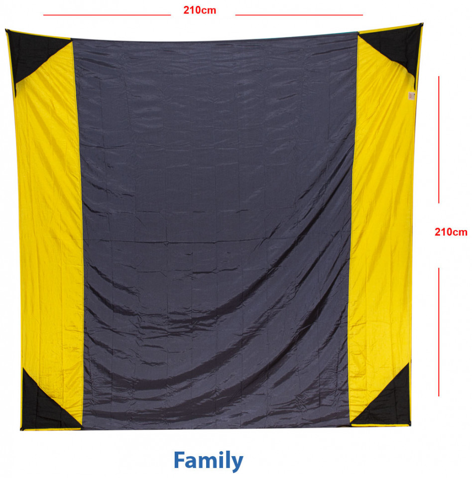 Κουβέρτα Παραλίας Family Favour AlpinTec Yellow/Anthracite 2.10x2.10 cm με άνετο σάκο μεταφοράς και πασαλάκια για εύκολη τοποθέτηση. Μπορεί επίσης να χρησιμοποιηθεί και στο Πικ-Νικ ή και ως τέντα, για προστασία στις υπαίθριες δραστηριότητες σας. Κατασκευασμένο από υψηλής ποιότητας ανθεκτικό ύφασμα αλεξιπτώτου με μεταξένια υφή και δροσερή αίσθηση. Μετά την χρήση στην παραλία μπορείτε απλά να το τινάξετε για να απομακρύνετε την άμμο. Εύκολο στο καθάρισμα καθώς μπορείτε να το πλύνετε και στο πλυντήριο.
