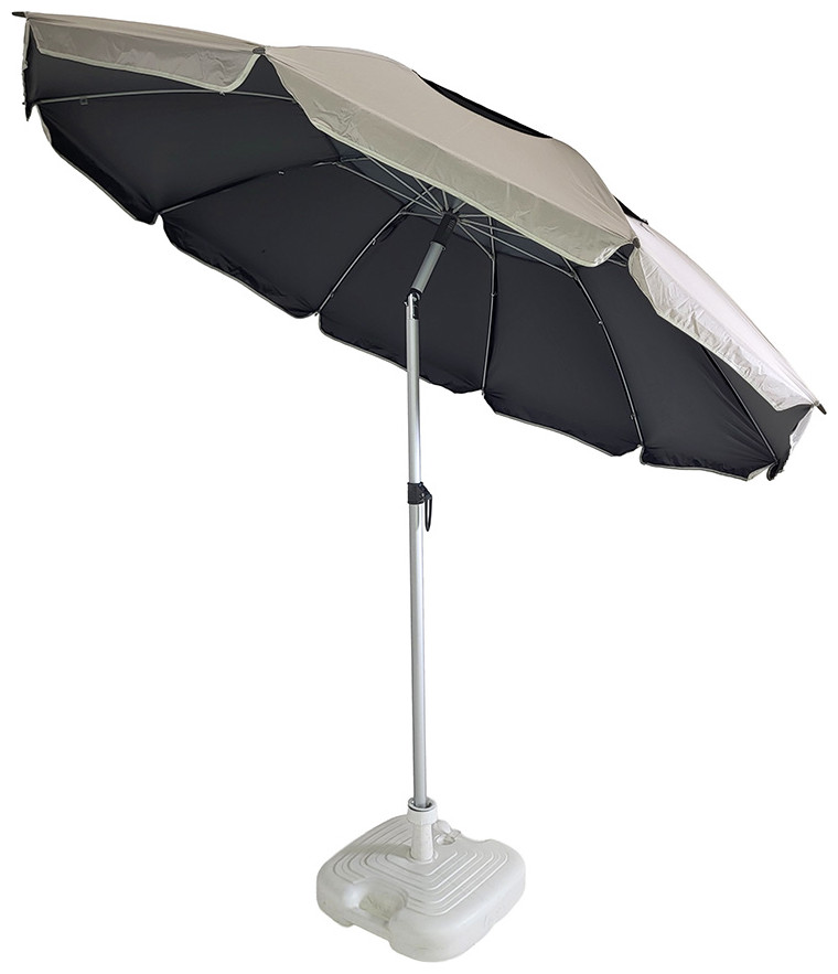 Ανακαλύψτε την Ομπρέλα Eden 200cm σε μαύρο και μπεζ χρώμα, ιδανική για τις καλοκαιρινές σας εξορμήσεις στην παραλία ή τον κήπο σας. Κατασκευασμένη από την έμπειρη μάρκα SUMMER CLUB, αυτή η ομπρέλα διαθέτει διάμετρο 200cm, προσφέροντας άφθονη σκιά και προστασία από τον ήλιο. Ο σκελετός της είναι μεταλλικός και βαμμένος, εξασφαλίζοντας αντοχή και σταθερότητα. Το ύφασμα είναι polyester silver με αντηλιακή επικάλυψη anti-UV SPF50+, παρέχοντας προστασία από τις βλαβερές ακτίνες του ήλιου.Η ομπρέλα διαθέτει αεραγωγό για καλύτερη κυκλοφορία του αέρα και 10 ακτίνες από fiberglass 6mm για επιπλέον αντοχή. Με 5 υποδοχές για σχοινιά, μπορείτε να την στερεώσετε εύκολα στο έδαφος, εξασφαλίζοντας ότι θα παραμείνει σταθερή ακόμα και σε αέρα. Έρχεται με σάκο μεταφοράς με ιμάντα ώμου, κάνοντάς την εύκολη στη μεταφορά. Με βάρος μόλις 1.7 Kg, η ομπρέλα Eden είναι η τέλεια επιλογή για τις καλοκαιρινές σας διακοπές.