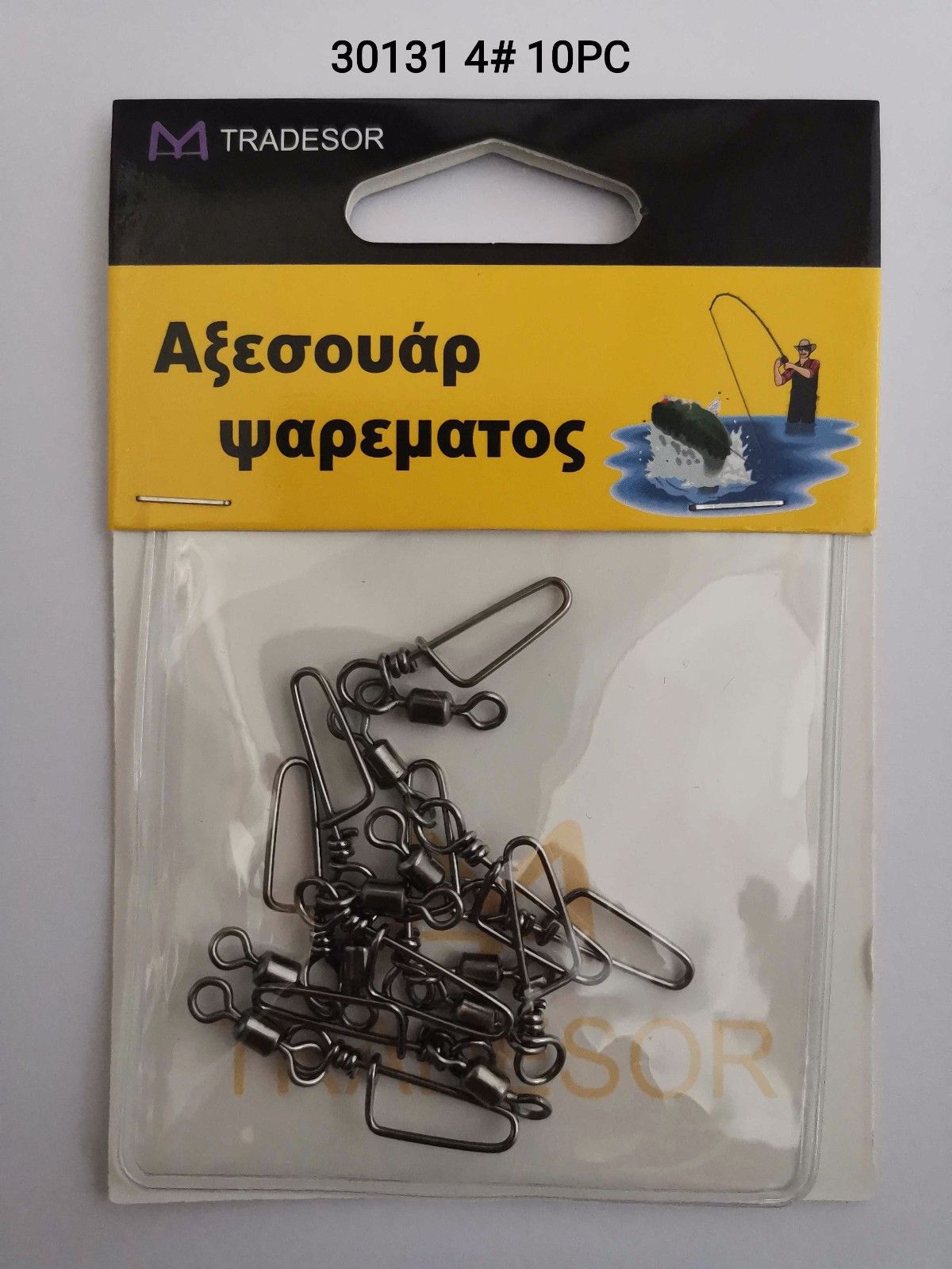 Ενισχυμένο στριφτάρι με παραμάνα ασφαλείας για εύκολη και γρήγορη αντικατάσταση τεχνητών δολωμάτων. Η χρήση παραμάνας δεν εμποδίζει την πλεύση των τεχνητών, αντιθέτως διασφαλίζει την ισορροπία τους καθώς η δύναμη έλξης που τους ασκείται εφαρμόζεται στο κέντρο τους. Η συσκευασία περιλαμβάνει 12 στριφτάρια μεγέθους 4#. Αυθεντικό προϊόν Tradesor!